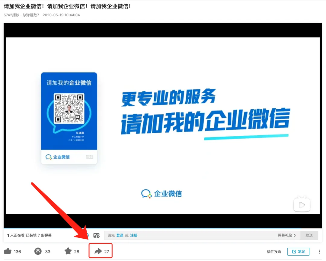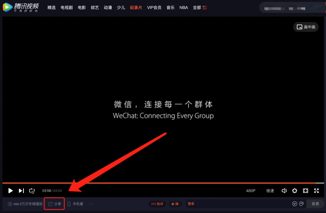 1、点击视频左下角【分享】按钮