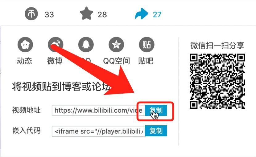 2、点击【视频地址】右侧的【复制】,即可成功复制链接地址到剪切板