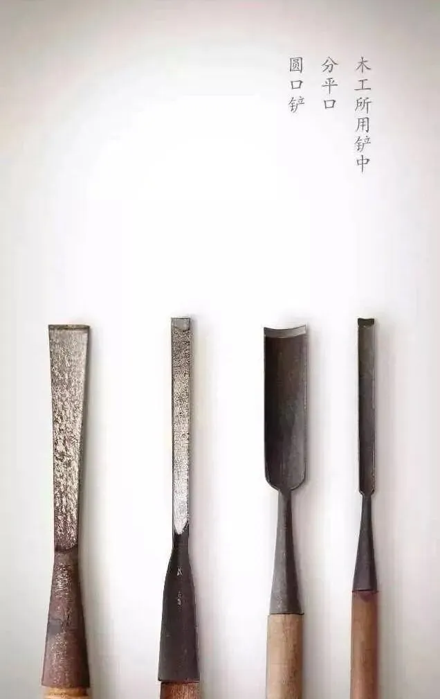 铲子分平口、圆口、斜刃 , 专门对付那些边边角角 , 刨子够不着的地方就靠它了。