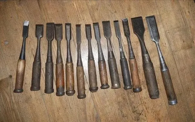凿子宽窄圆加起来十几把 , 凿眼挖口剔槽全靠它 , 是木匠工具里存在感最强的一类。