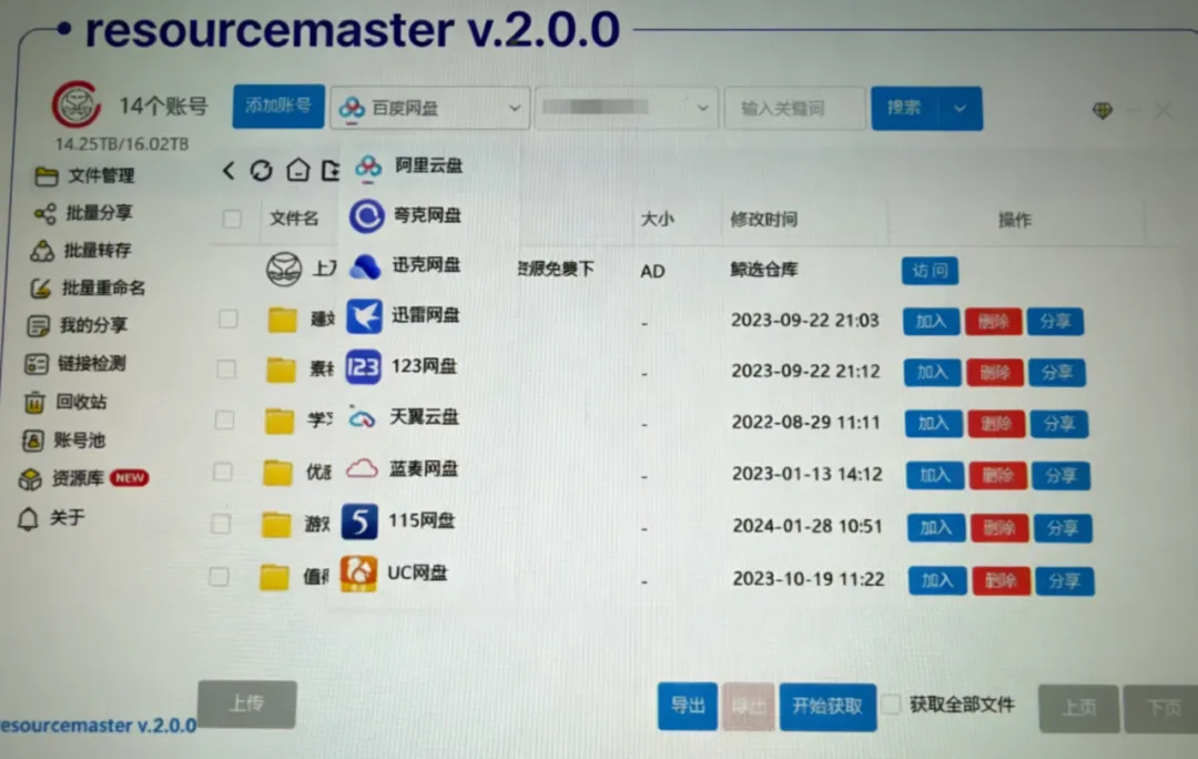 esourceMaster v2.0.0 是专为多网盘用户设计的高效文件管理工具,全面兼容市面上主流网盘平台,支持同时登录、管理多个网盘账号,把分散在不同平台的文件集中整合,实现统一查看、统一管控,彻底解决多网盘切换繁琐、操作低效的问题,不管是日常文件整理、资源搜集,还是批量文件处理都非常实用。