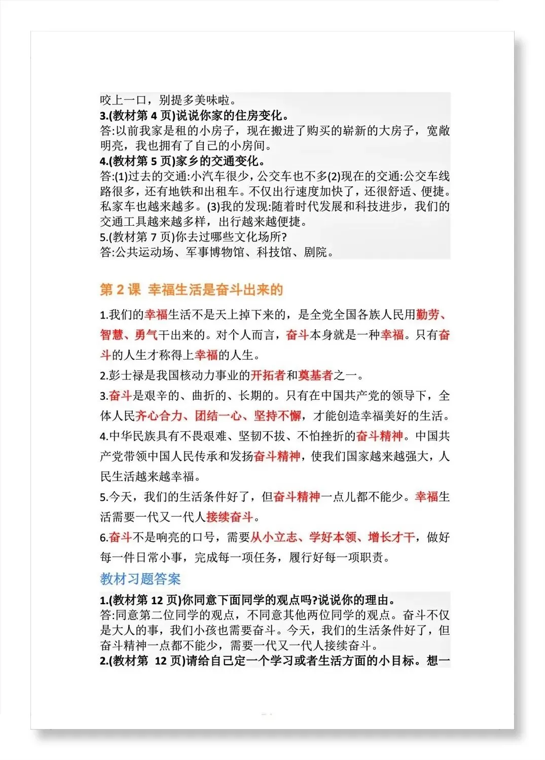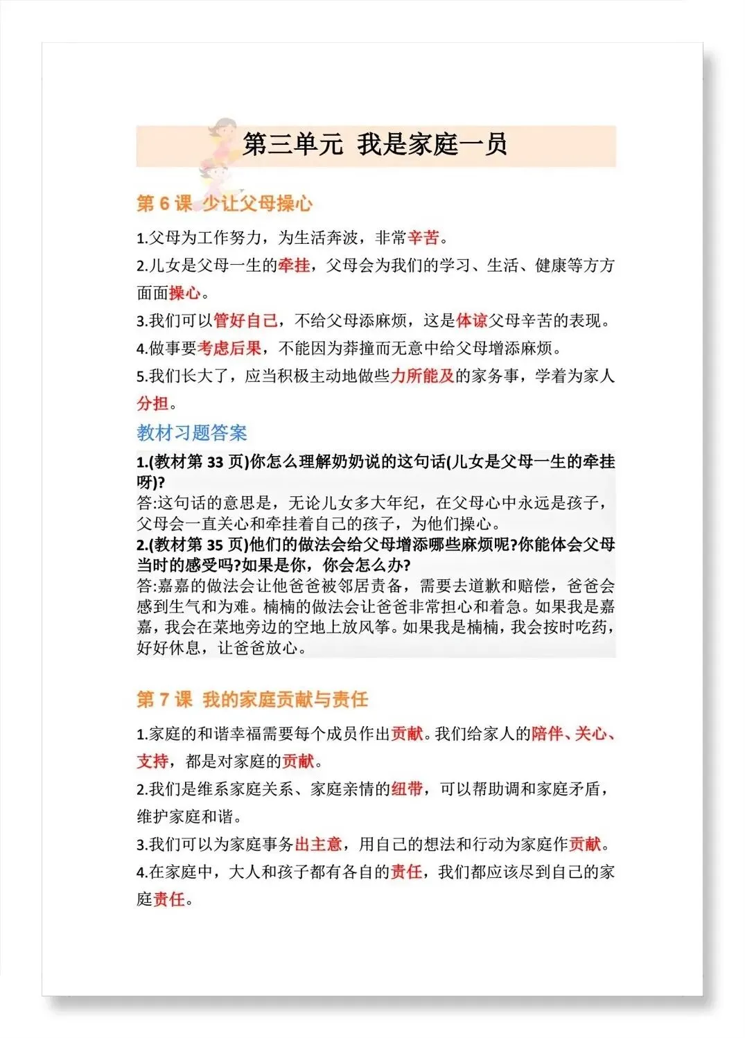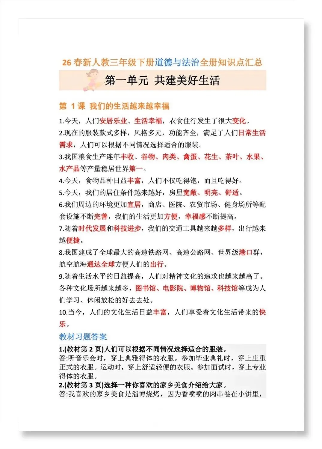26春新版人教版三年级下册道德与法治全册知识点整理汇总(附教材习题答案),电子版