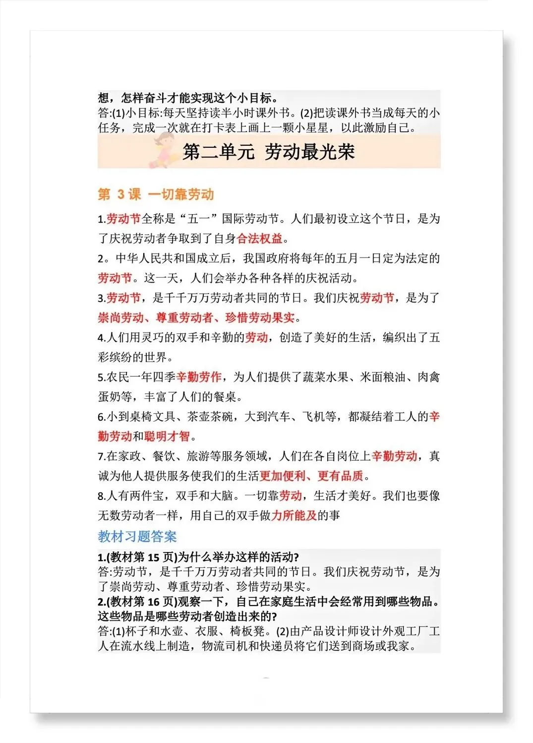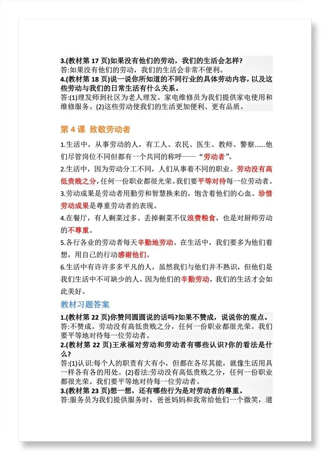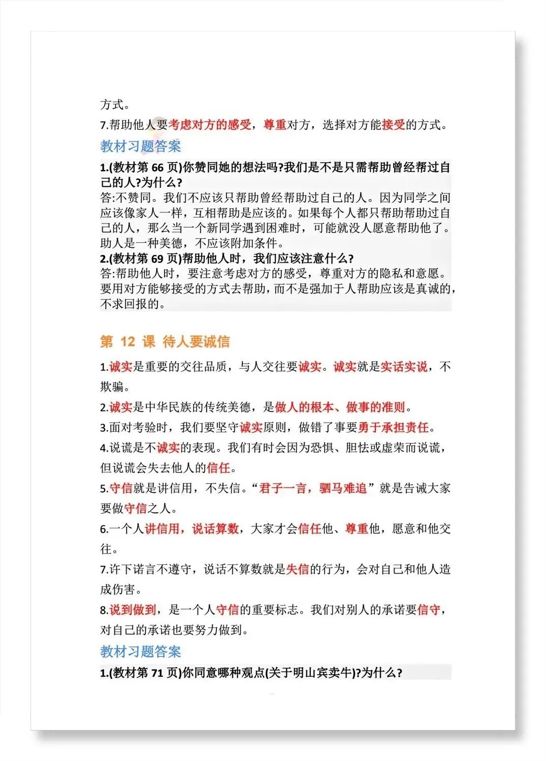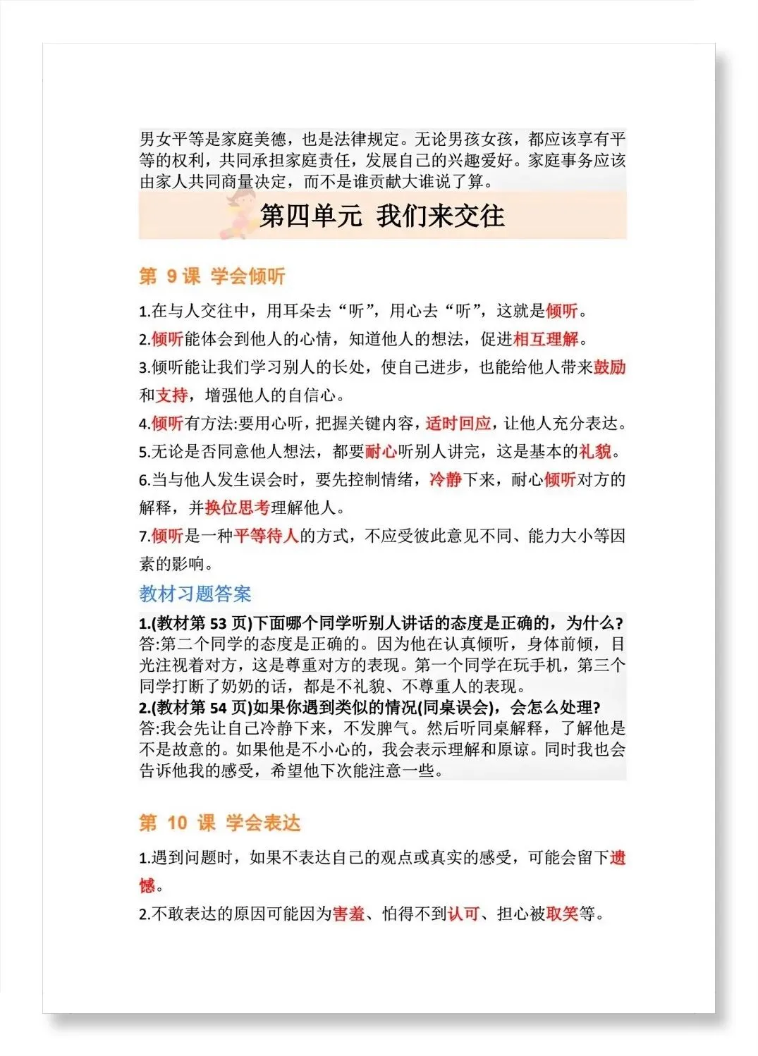 26春新版人教版三年级下册道德与法治全册知识点整理汇总(附教材习题答案),电子版