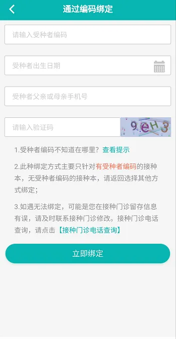 按上图内容填写小孩个人信息,方法二中“受种者编码”为小孩《接种证》上黏贴的条形码。