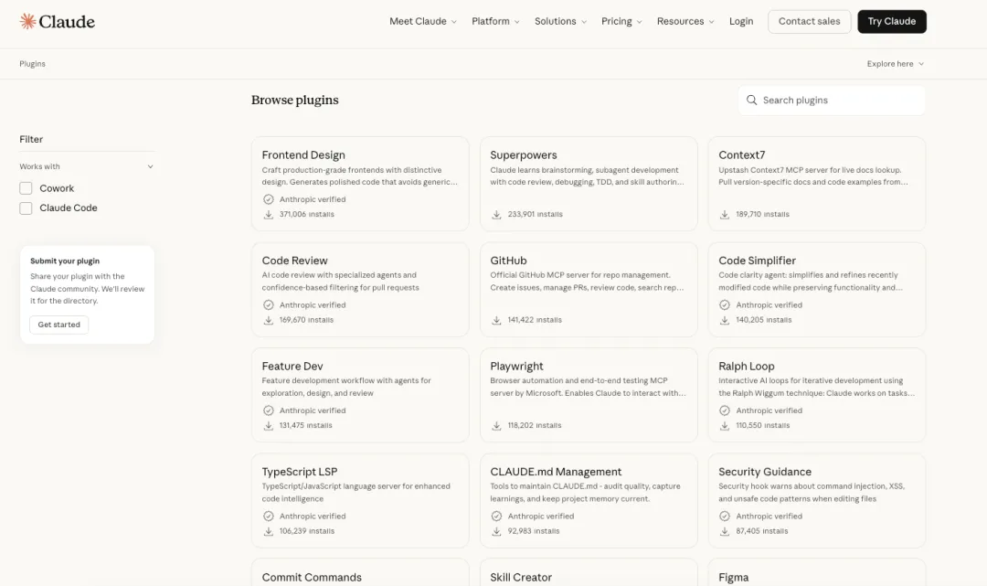 也是Claude官方的认证插件,上架了Anthropic的官方插件市场,安装量冲到了23万,排名第二。