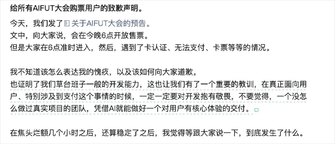 我们自己做AIFUT的票务小程序的时候,其实就是因为盲目自大以及AI辅助流程不规范,很多用户需求前期没有考虑清楚就直接上线了,边界风险考虑的也不清楚,这其实就是前期的规划问题。