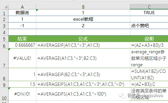 2)对于计算平均值区域中的逻辑值、文本、以及文本型数字都做忽略处理,而如果是在条件区域中,逻辑值True会被当作1参与计算,False当作0参与计算,空单元格也被当作0参与计算。