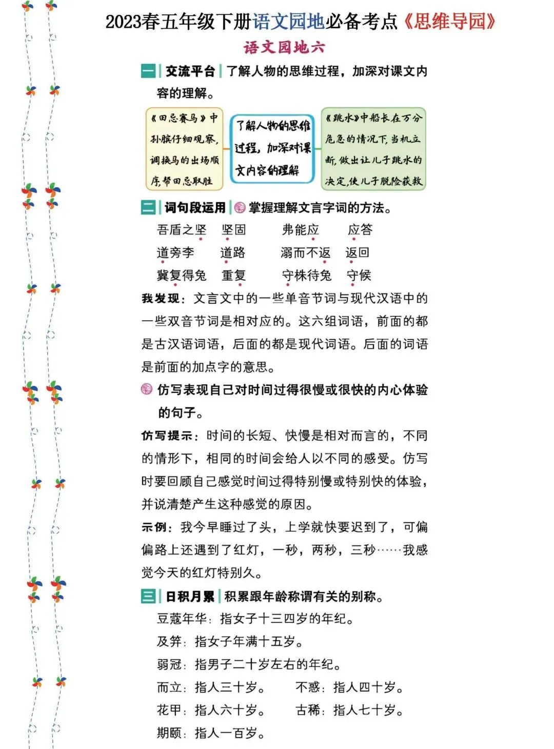 五年级下册语文园地必考点思维导图(电子版可打印附答案)