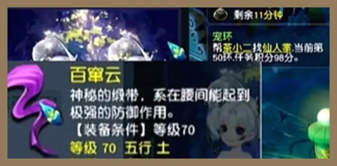 重头戏来了,就是这条70级的腰带。它是强化打造的效果,基础属性是防御加44、气血增加164,并且耐久也正常。最重要的是双蓝字组合:特技伯牙绝弦、特效愤怒。这个组合值不值得钱呢?因为怒气可以让你更快地释放出技能,在很多队伍中都是“关键回合翻盘”的发动机;而伯牙绝弦对于许多门派来说都十分有用,既可以打节奏又可以起到压制的作用,属于实战中上场率较高的特技。“把这两者放在一起”,真的是懂的人一眼就能看出来。