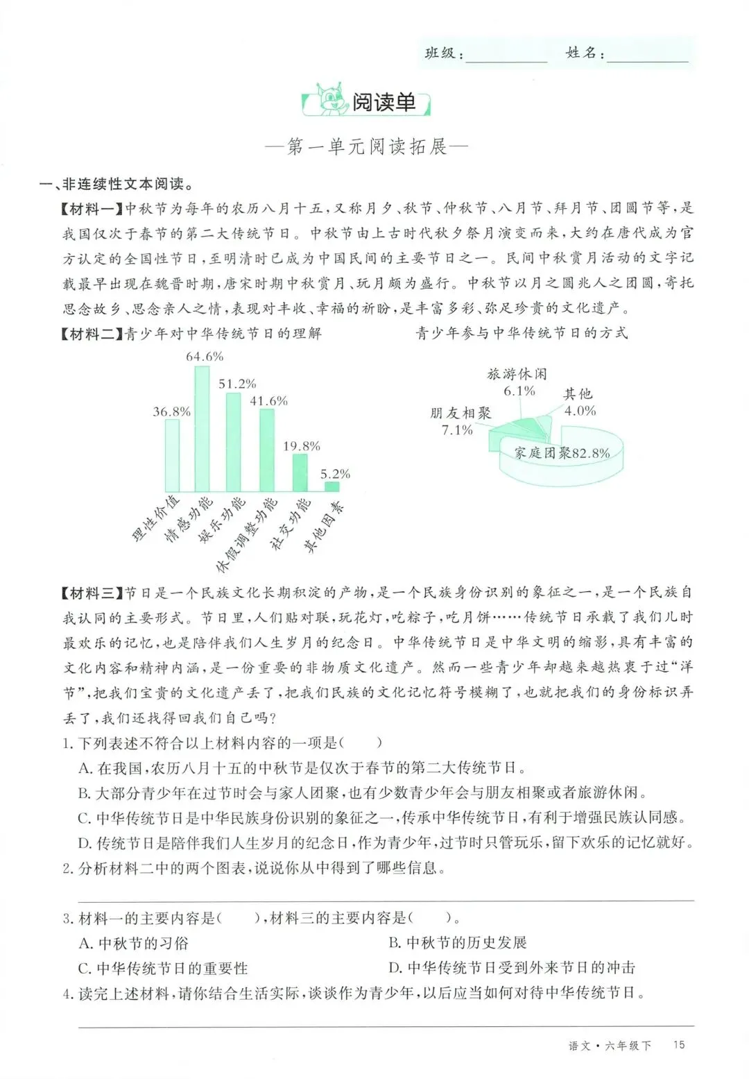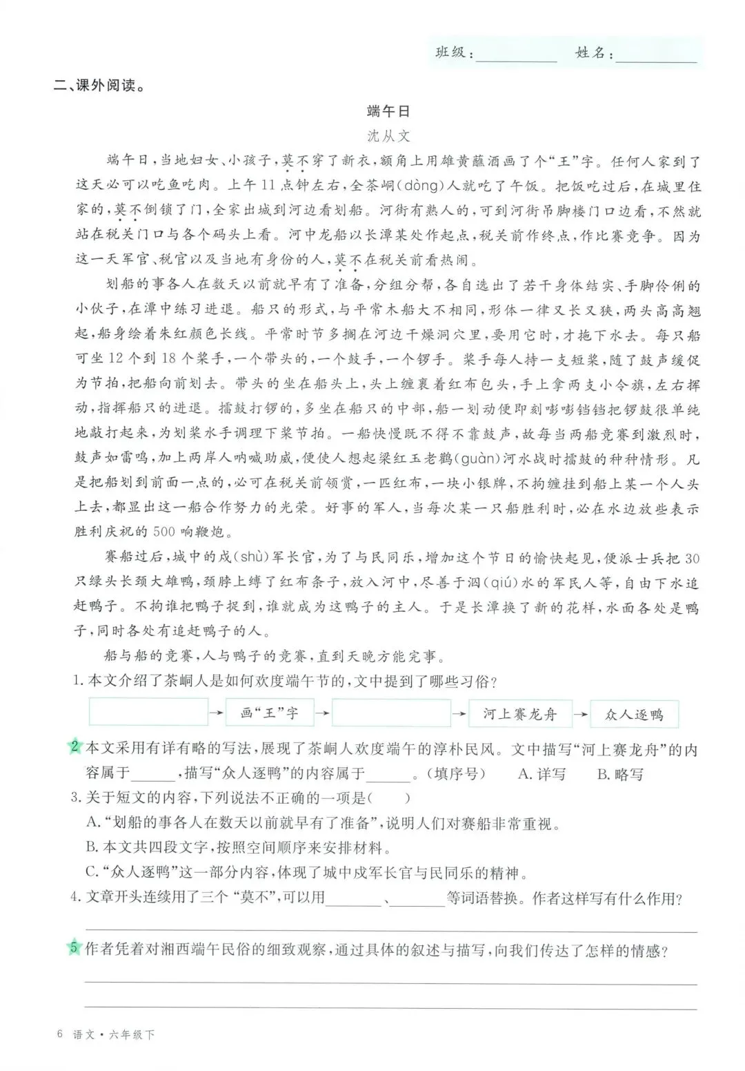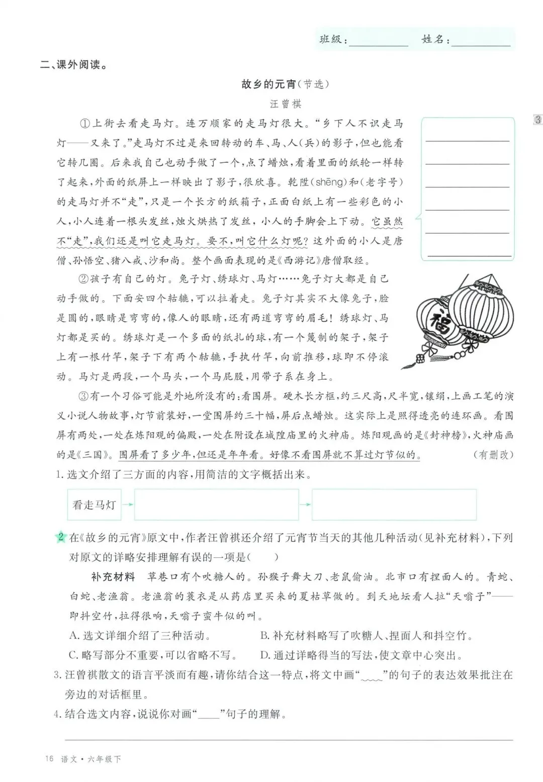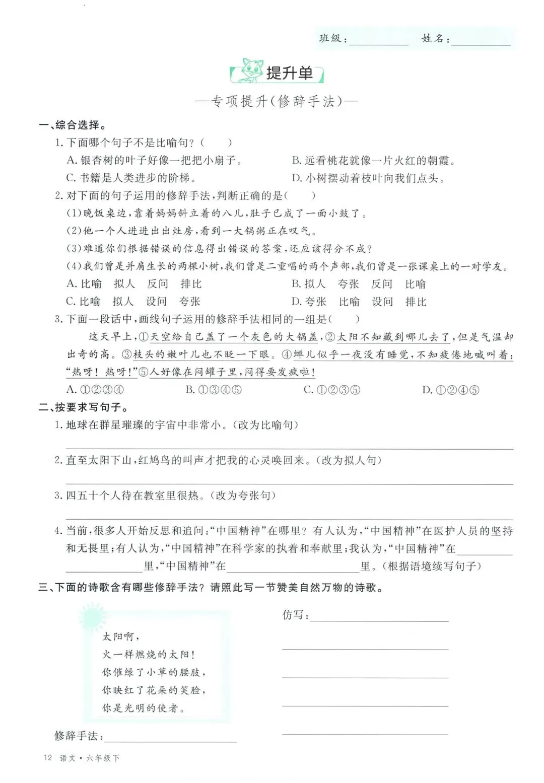 26年春新版六年级下册语文部编版全册学习单,有完整电子版可打印
