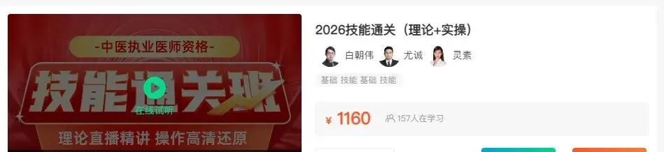 人民医学网2026年中医中西医实践技能通关班已开讲!人民医学网最全技能线上课程,共100+课时;技能一二三站内容全包含、理论+实操一网打尽!