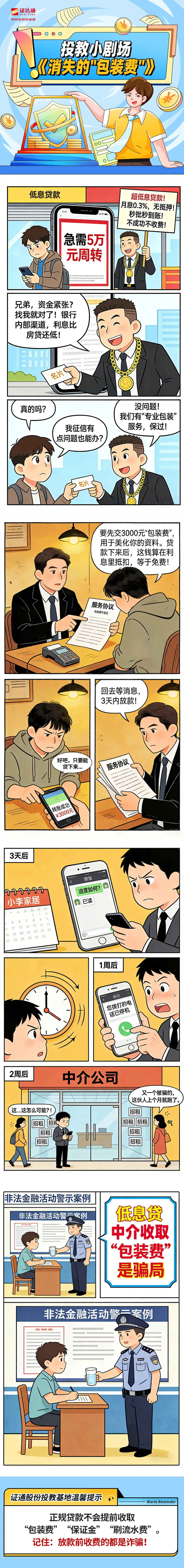 【投教漫画】消失的“包装费” 点击蓝字,关注我们 免责声明:本栏目仅作为投资者教育用途,不构成任何投资建议。投资者不应当以该等信息取代其独立判断或仅根据该等信息做出决策,任何机构或个人据此做出的任何投资决定或行为,风险自担。本文信息力求准确可靠,但对这些信息的准确性或完整性不作保证,亦不对因使用该等信息而引发或可能引发的损失承担任何责任。