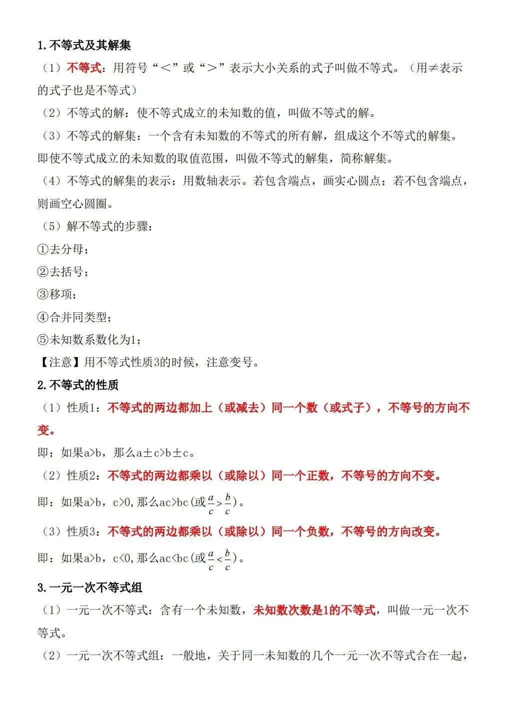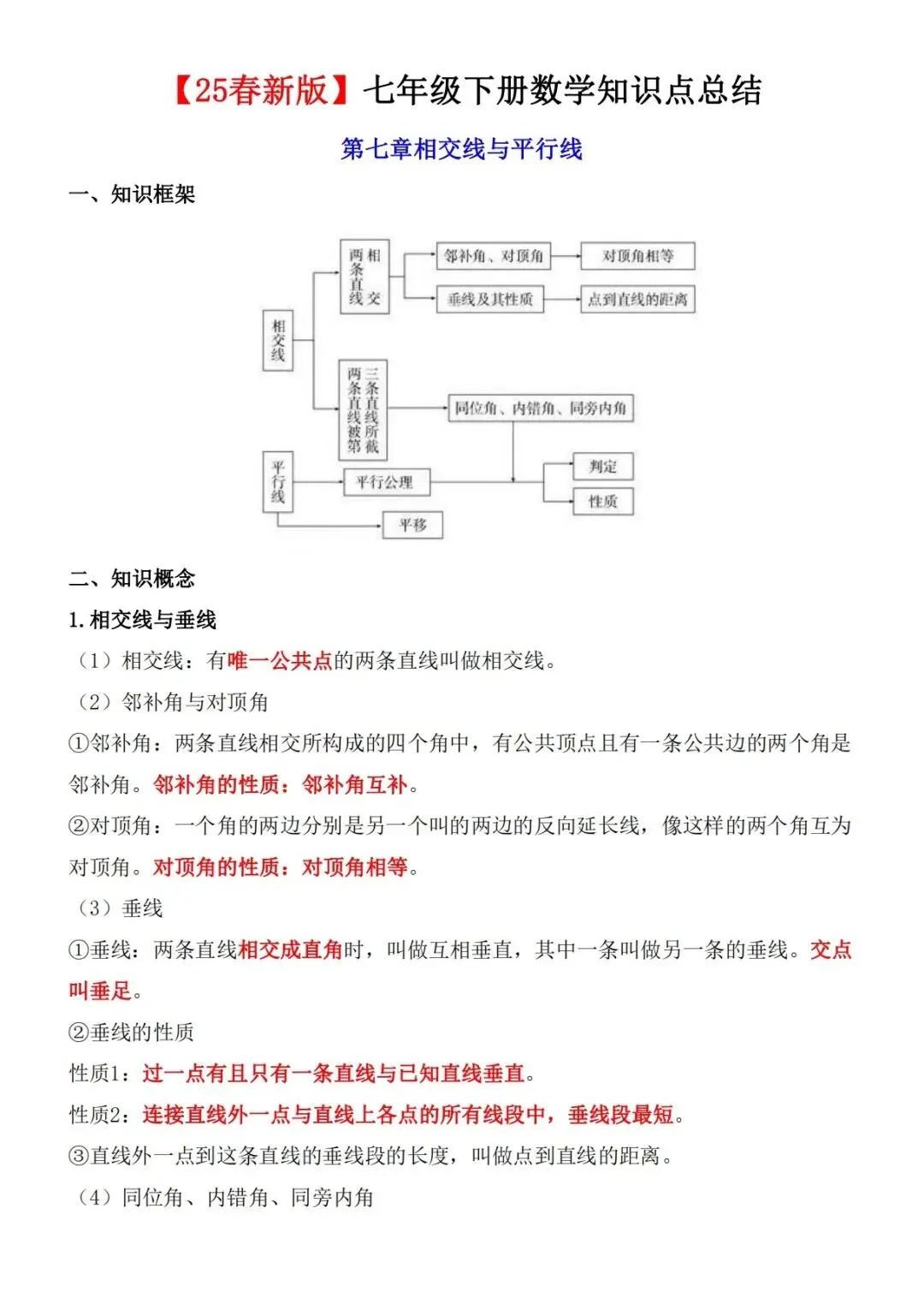 2026版七年级下册数学知识点总结,可打印电子版!