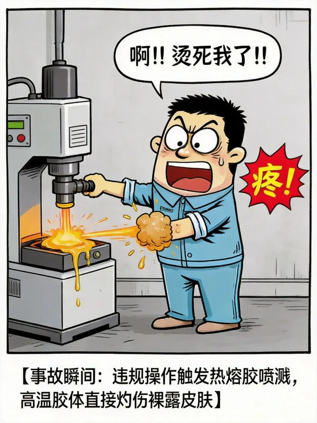 安全漫画:热熔胶喷溅瞬间,高温灼痛感直钻骨髓!