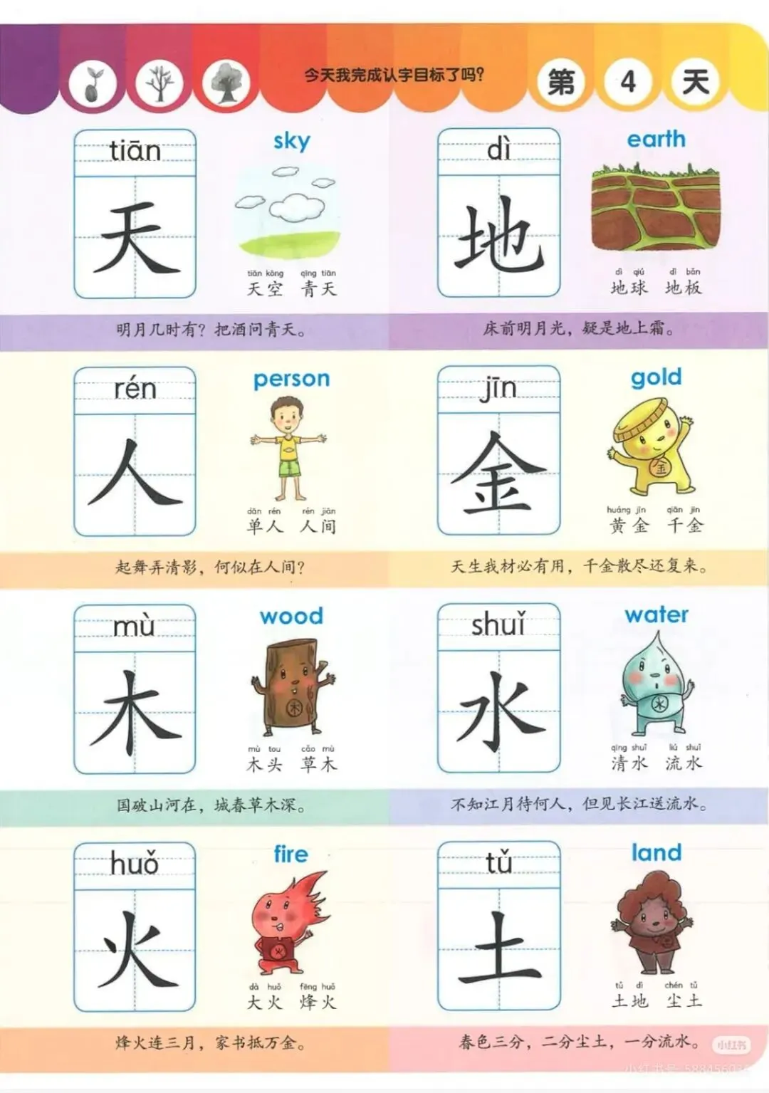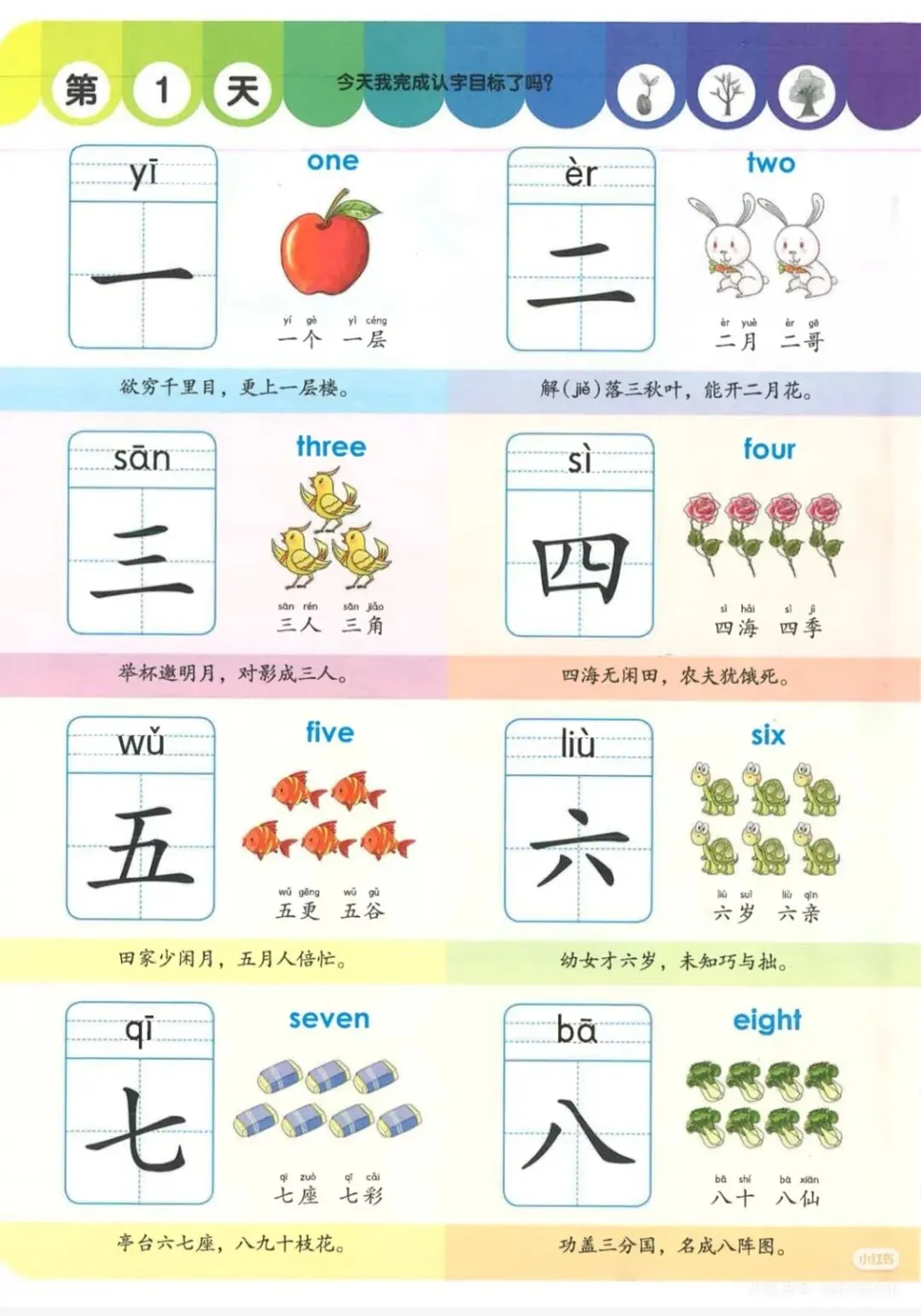:涵盖幼小衔接及一年级上册常用汉字,每字均配拼音、组词和趣味插图,图文并茂,加深记忆。 - 科学编排,循序渐进