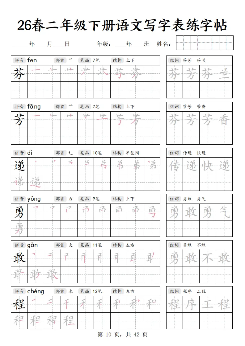 🌸今天给家长分享的是:26春二年级下册语文《写字表练字帖》|电子版可打印
