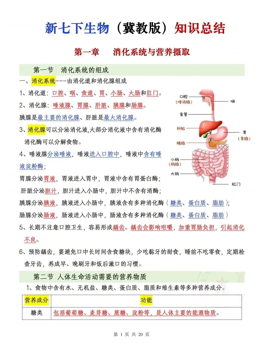 大家好,今天老师整理了:2026版七年级下册冀教版生物知识点总结,可打印电子版!