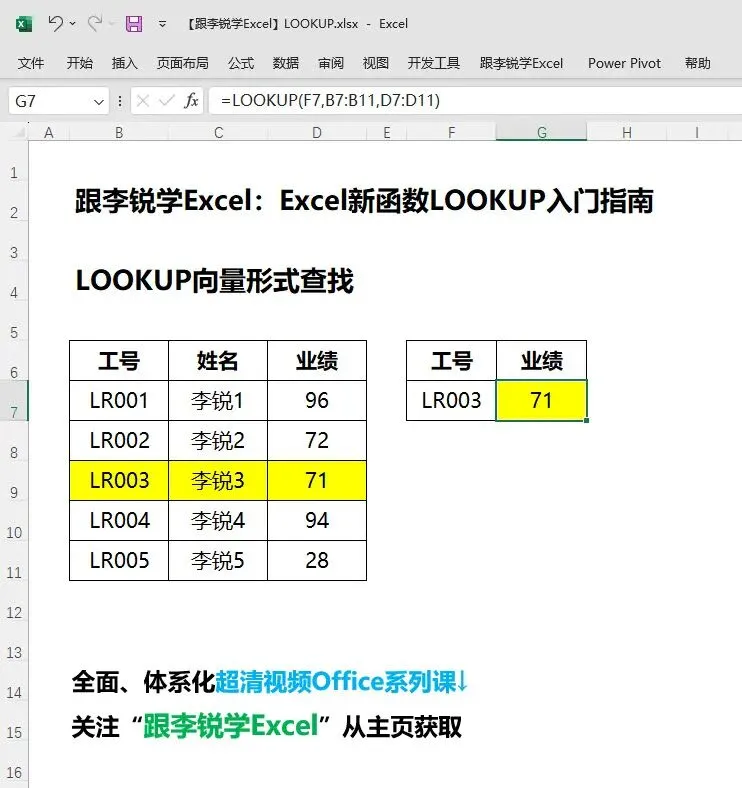 LOOKUP函数用于按照条件查询数据。是工作中常用的查找函数。