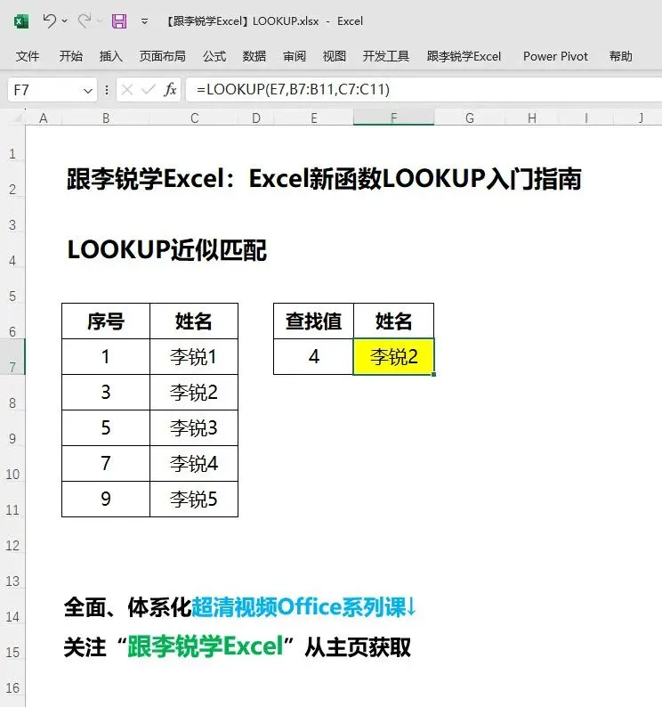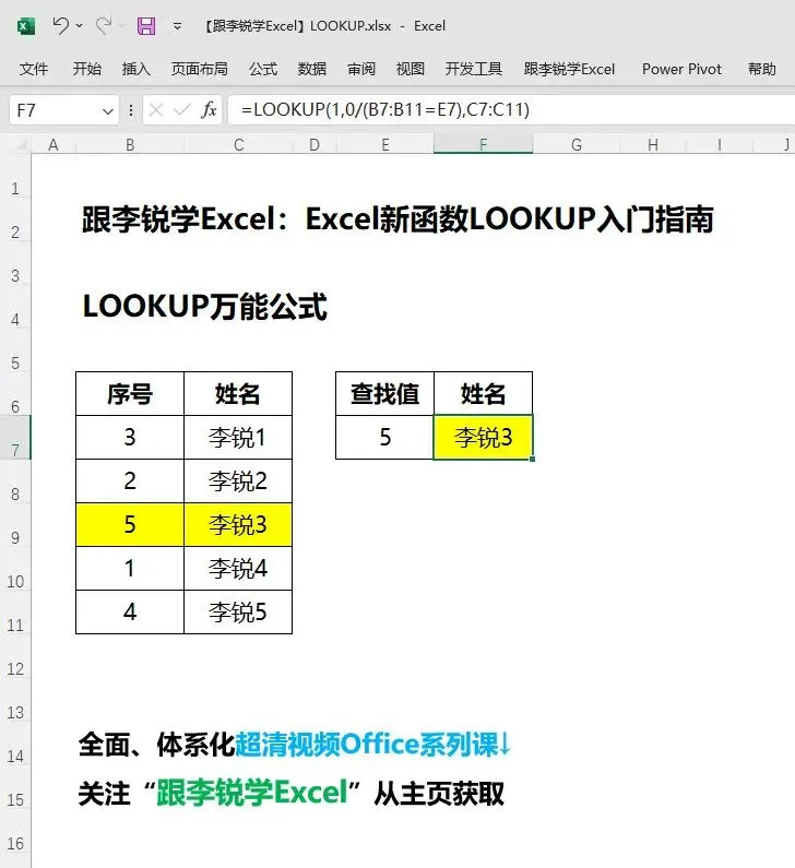 常规用法下,LOOKUP要求第2参数升序排列;万能公式LOOKUP(1,0/条件,返回区域)不受此限制