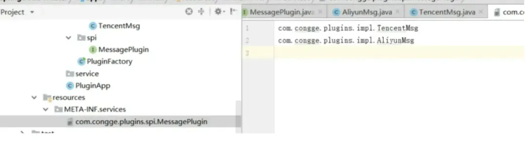 server :port :8081impl:name :com.congge.plugins.spi.MessagePluginclazz :-com.congge.plugins.impl.TencentMsg-com.congge.plugins.impl.AliyunMsg