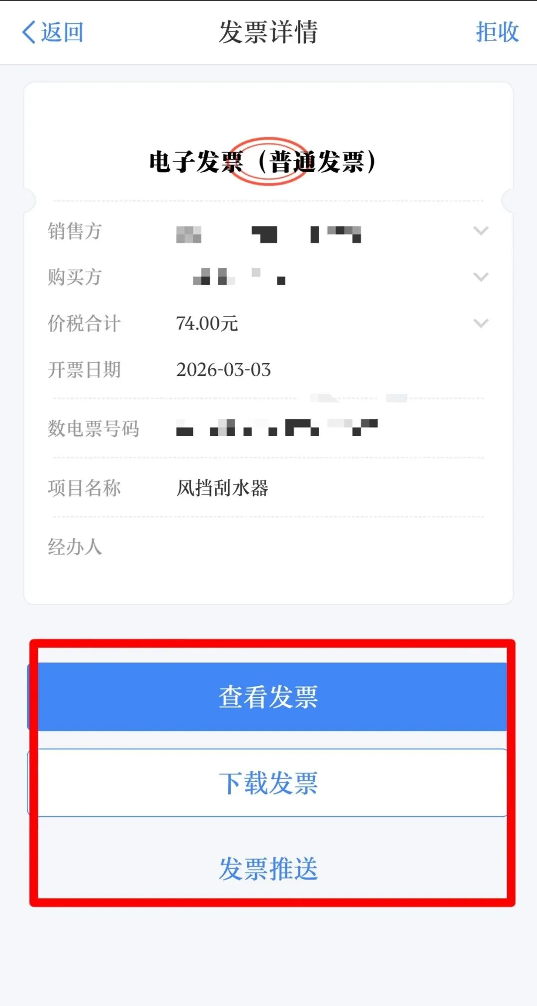 注意事项:每张发票仅可推送1次,推送成功后将不能在个人票夹中对已推送发票拒收。