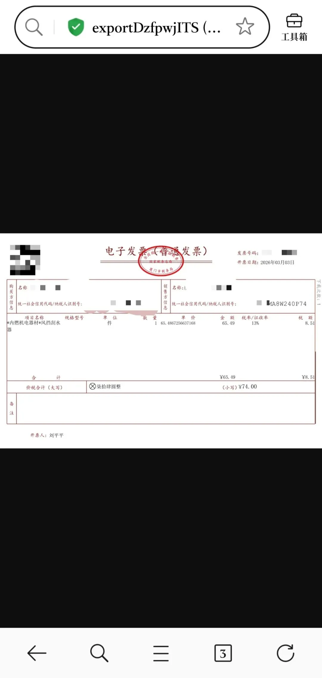 点击【查看发票】跳转到浏览器发票票面查看页面。