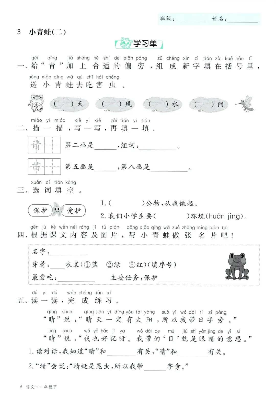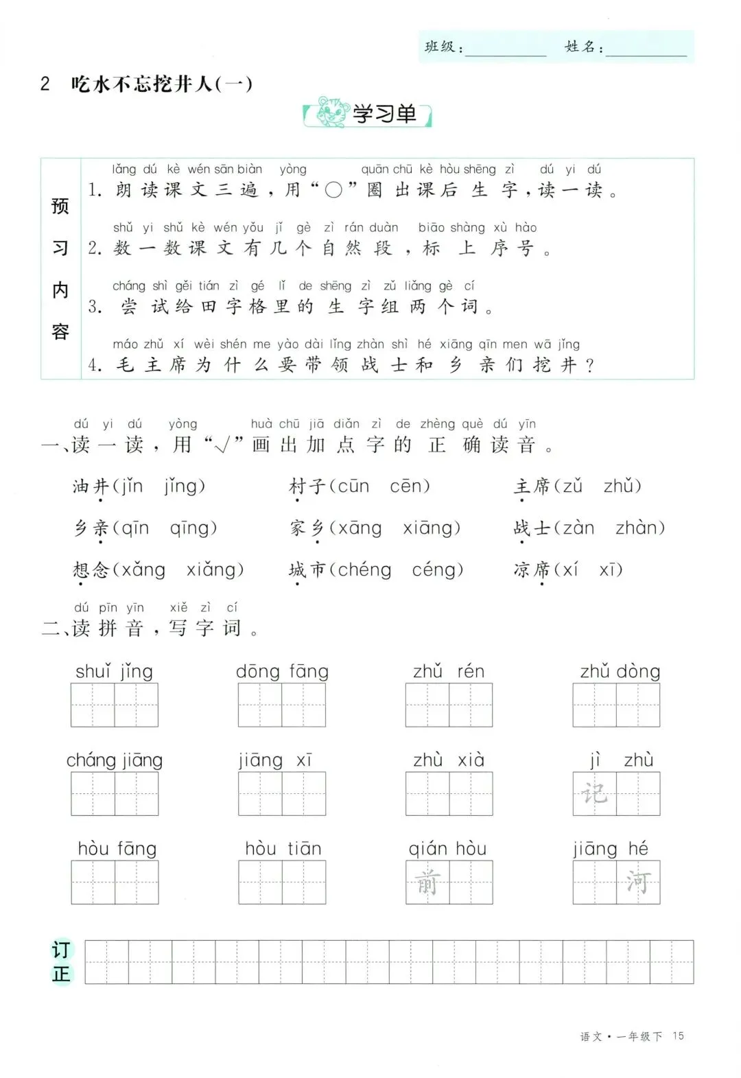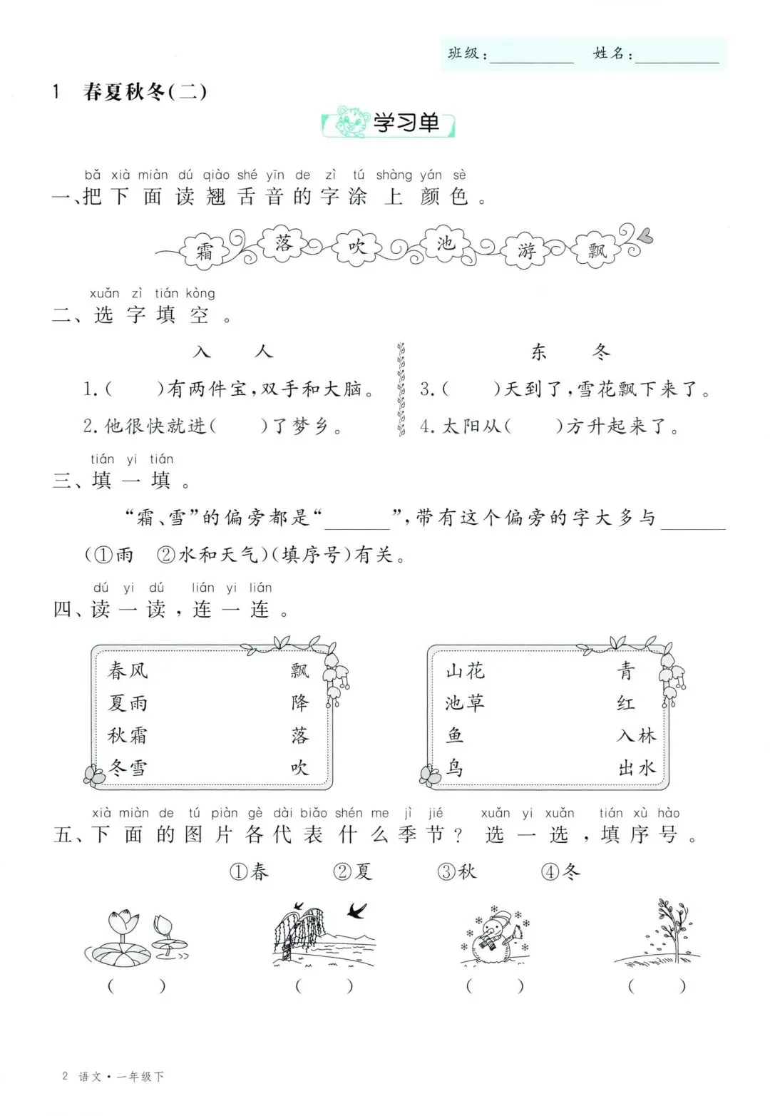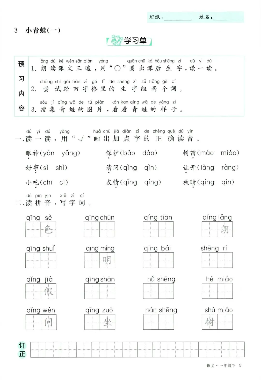 26年春新版一年级下册语文部编版全册学习单,有完整电子版可打印