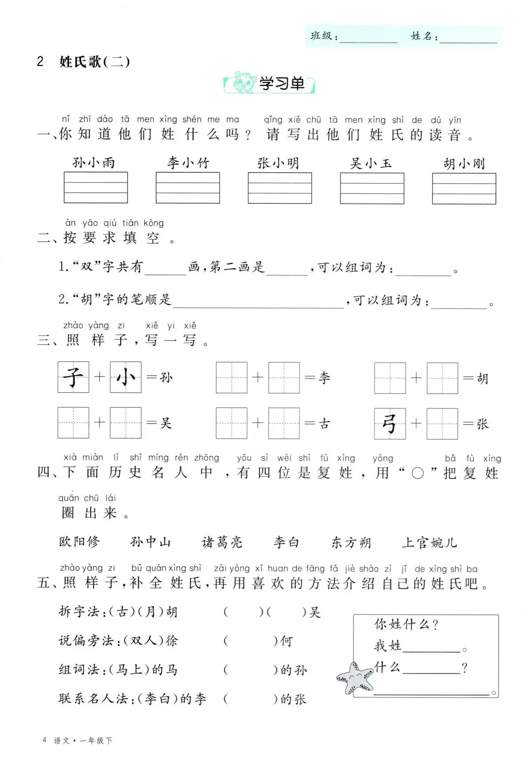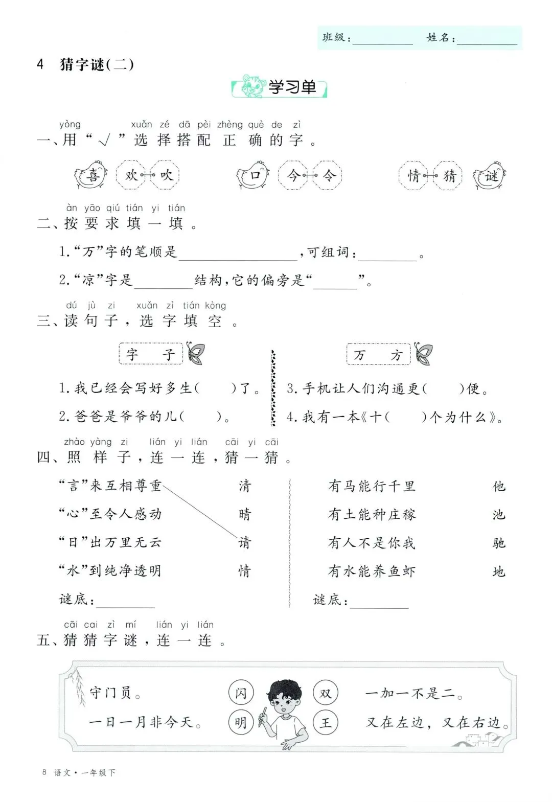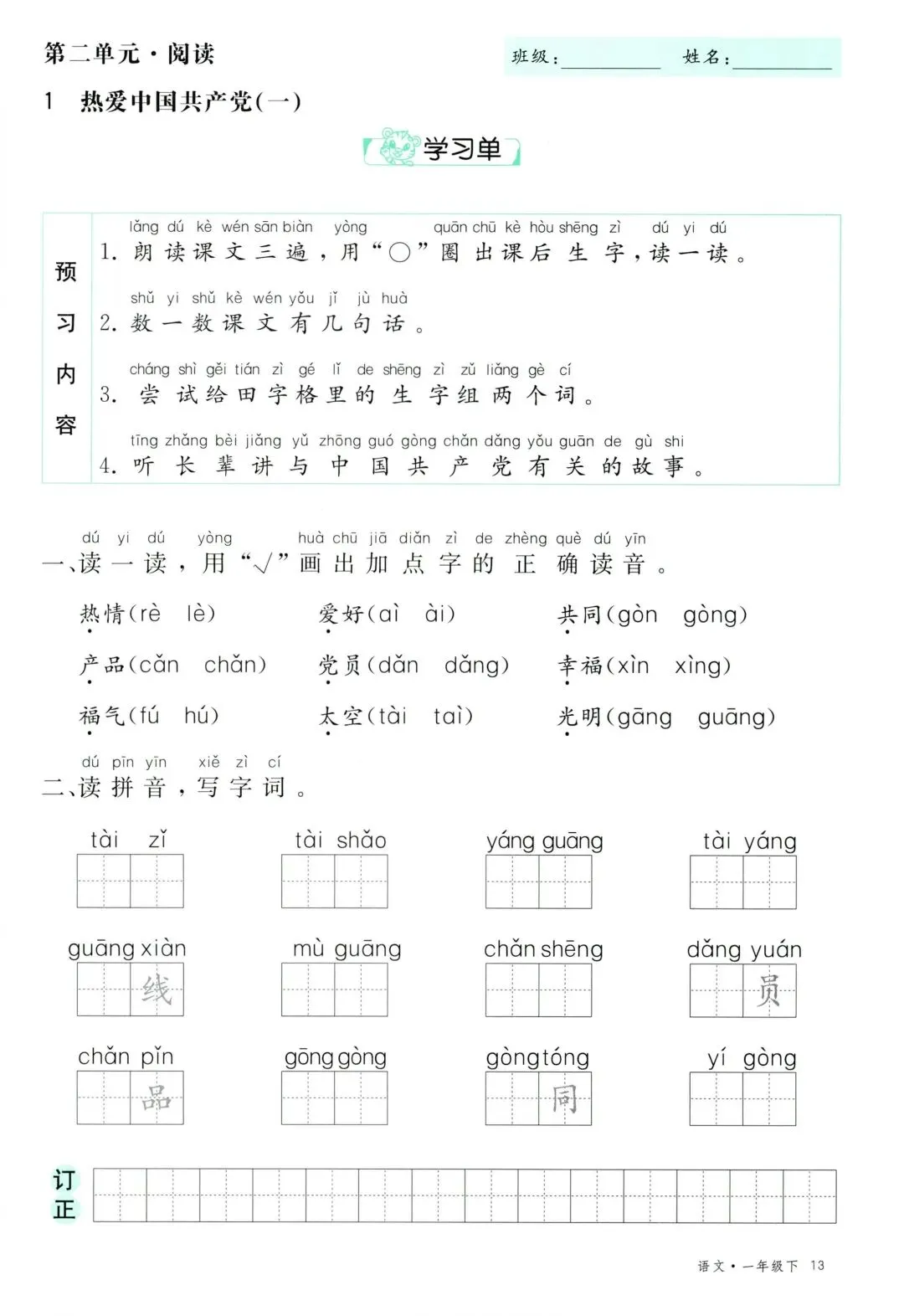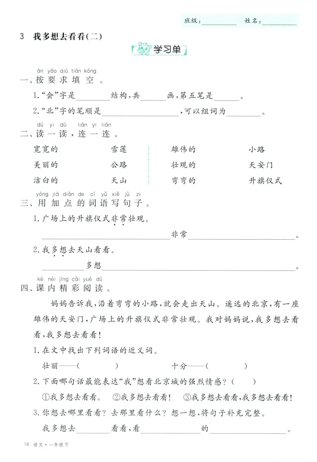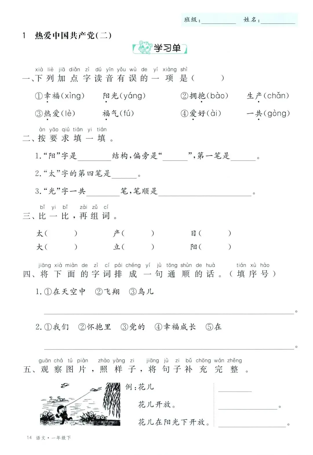 26年春新版一年级下册语文部编版全册学习单,有完整电子版可打印