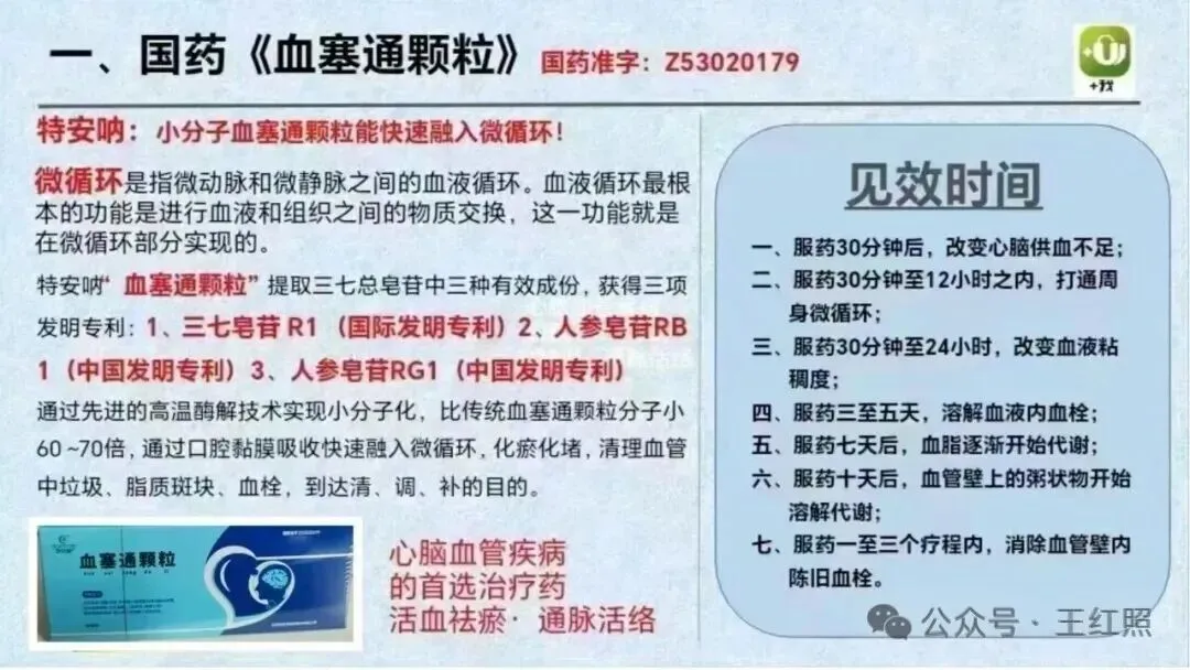 服用血塞通颗粒,30分钟到12小时内打通微循环,微循环通了、血液干净了,人的脏器也就恢复了自愈力。
