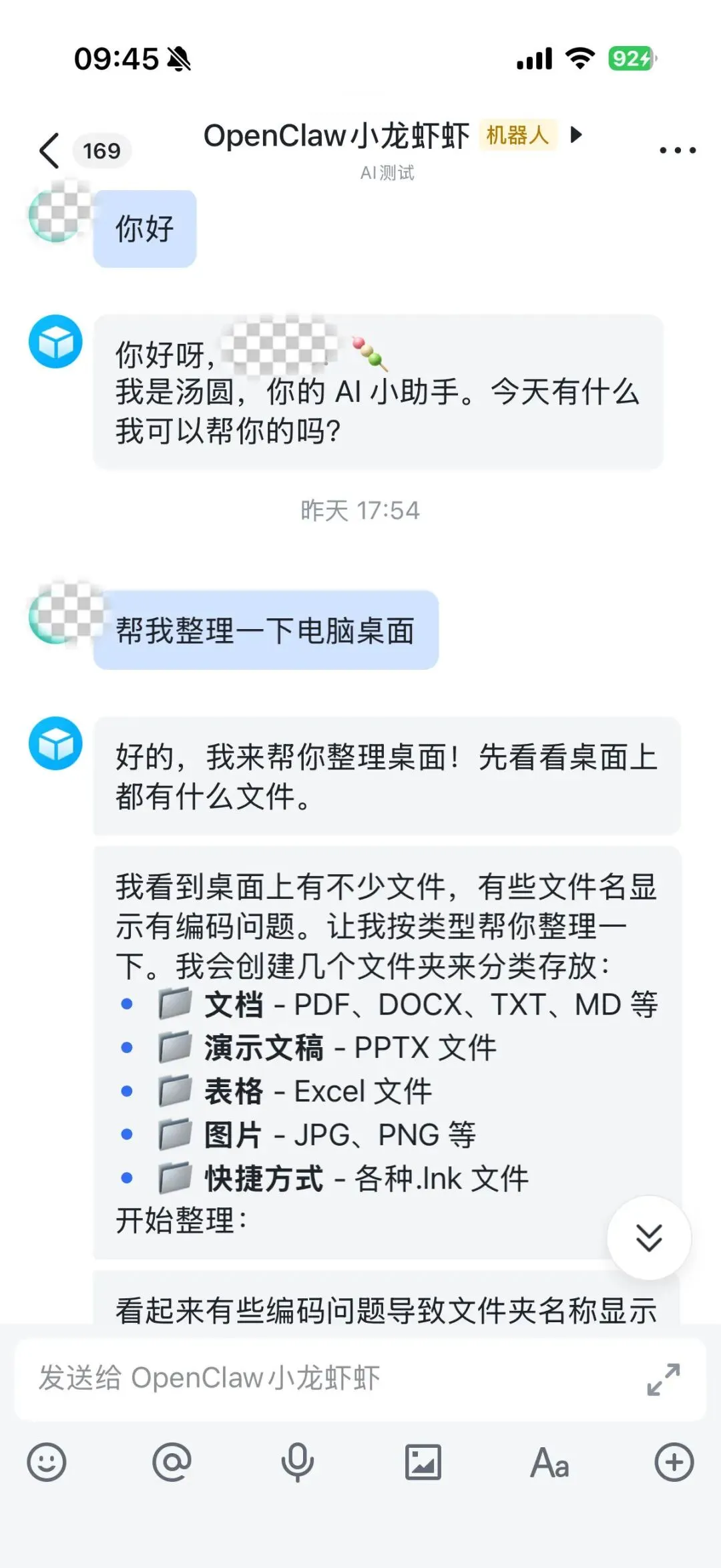 在飞书聊天框中,给小龙虾发消息,小龙虾就能帮你干活了。
