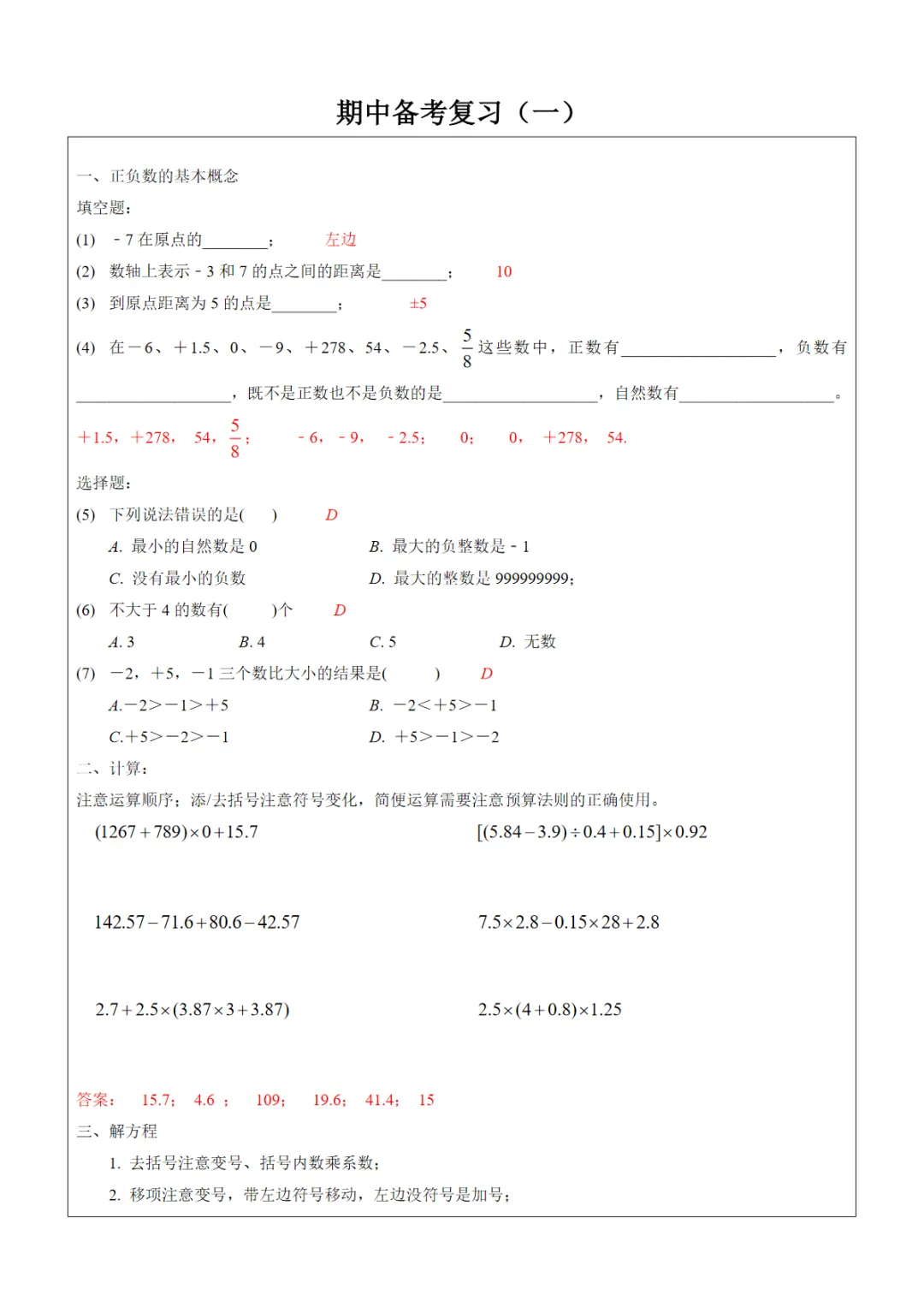 [免费下载],一课一练 -期中备考复习(一) 沪教版(含答案)【沪教】五下数学同步练习,PDF电子版,可打印