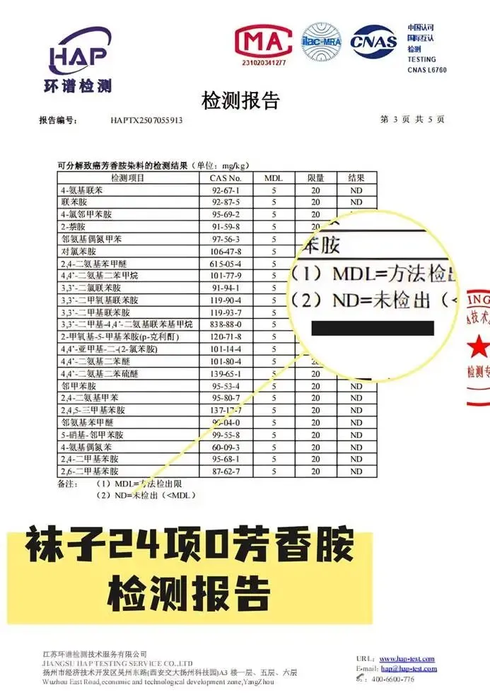 始终以婴幼儿安全标准打磨每一双袜子,用检测数据为品质背书,每一组袜子均附带由环谱检测(HAP),出具的完整检测报告。