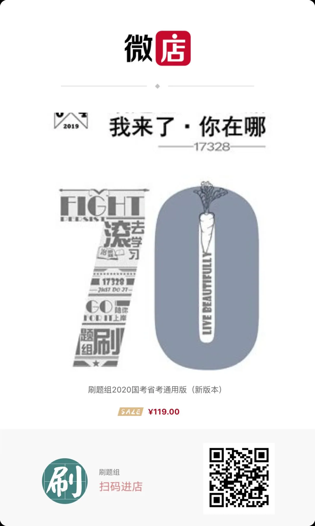 在某宝找不到簏苑的小伙伴,可以扫描下方二维码通过微店购买刷题组纸质版,微店名称:刷题组~)~