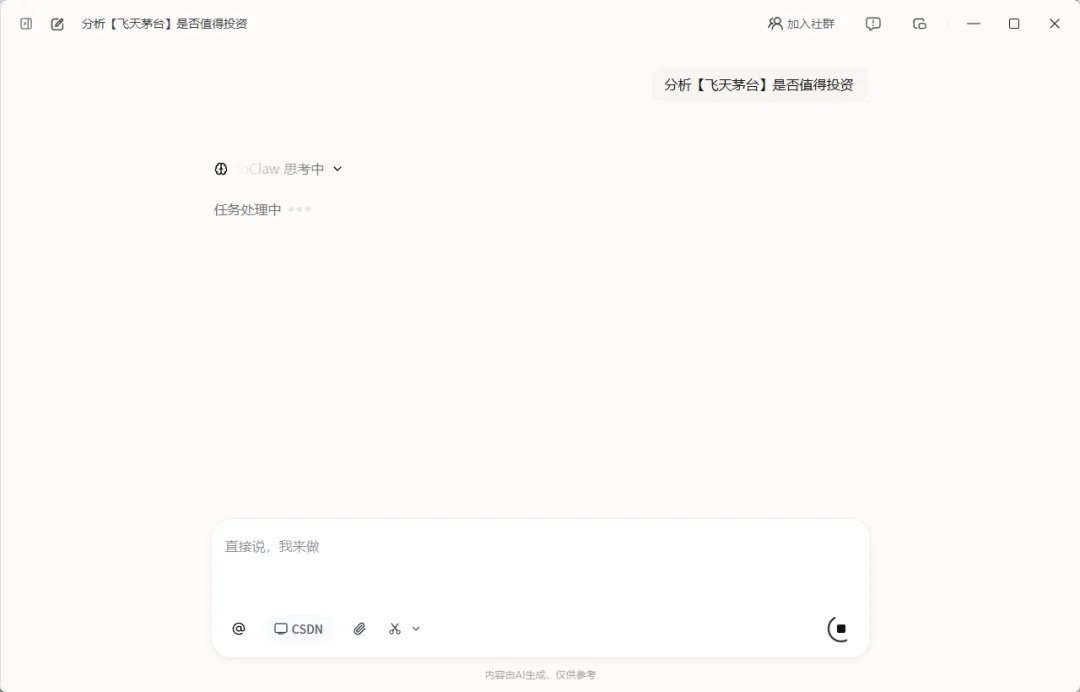 现在如果 ToClaw 成熟起来,它会变成“你在这边下指令,AI 在那边帮你推进任务”。