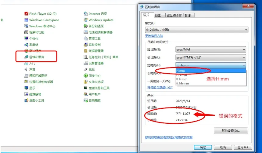 2.报错分析:“上”或“下” 指的是系统时间里面的上午或下午,简单来说就是软件不支持时间格式里显示上午或下午的方式,所以你把系统时间显示方式修改为24小时制就100%解决