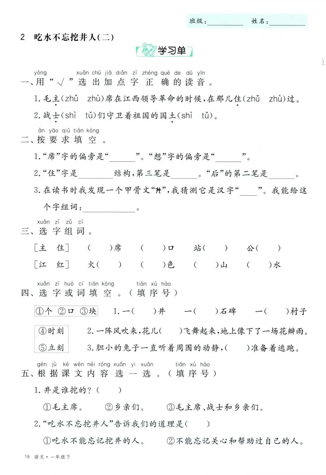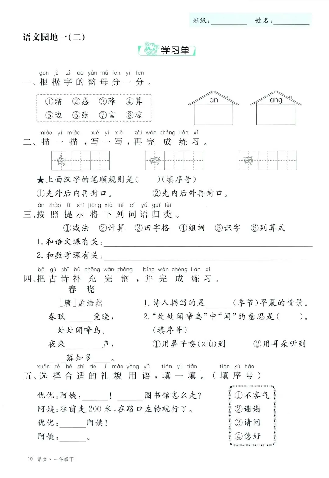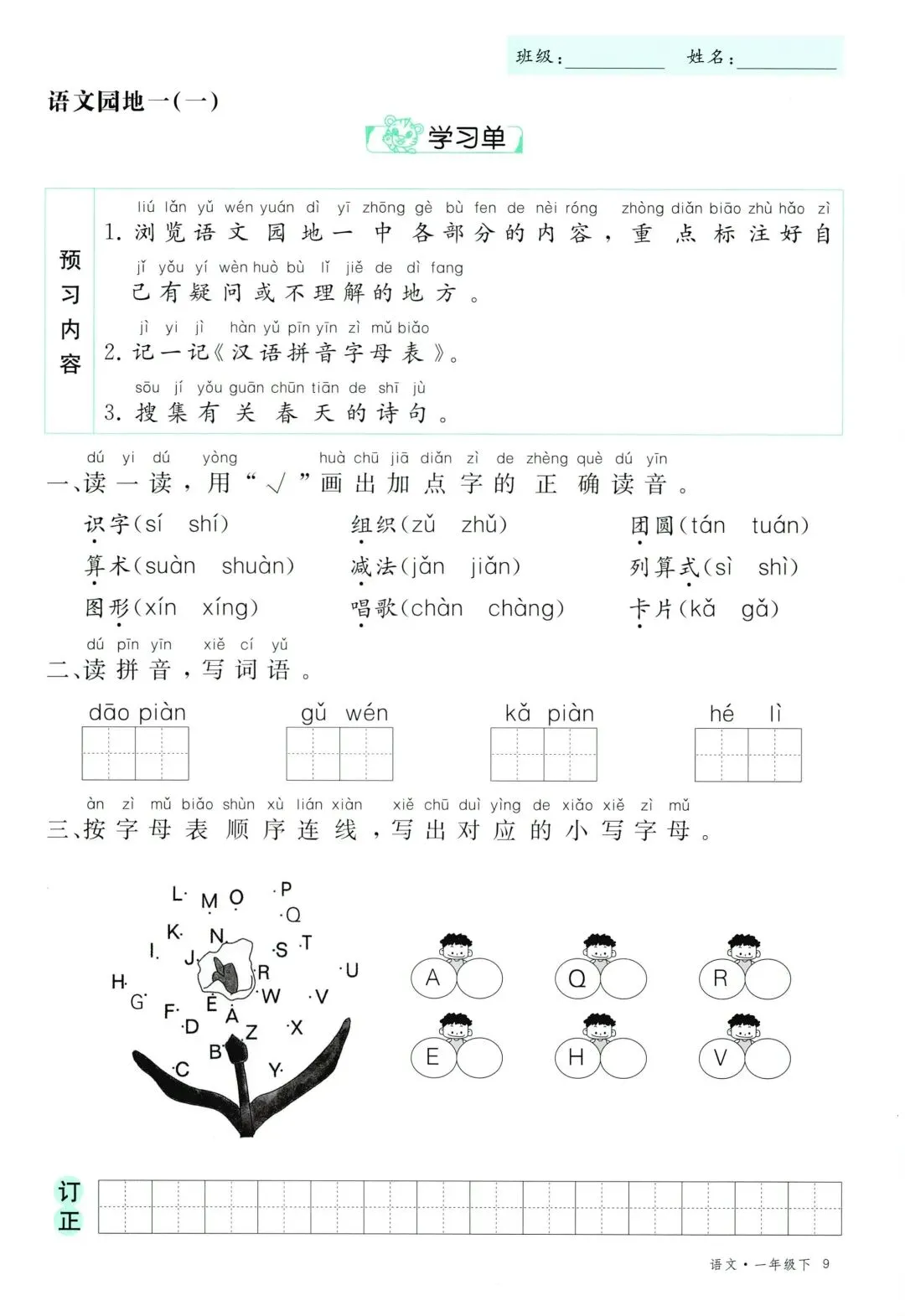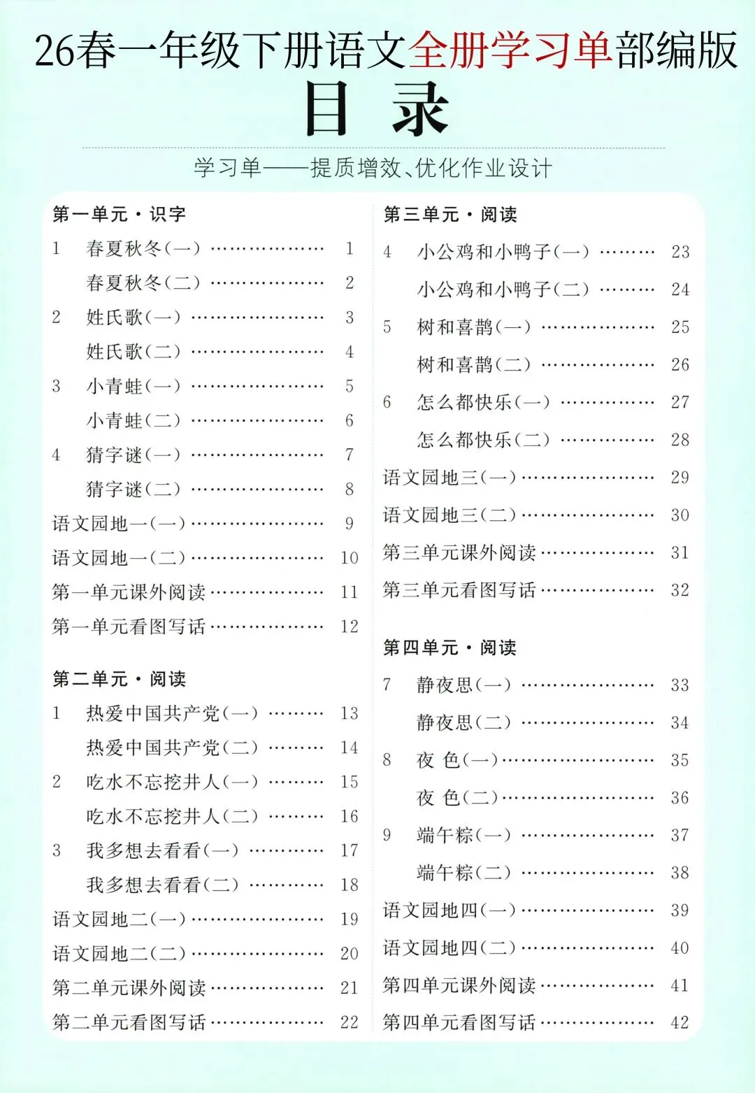 26年春新版一年级下册语文部编版全册学习单,有完整电子版可打印