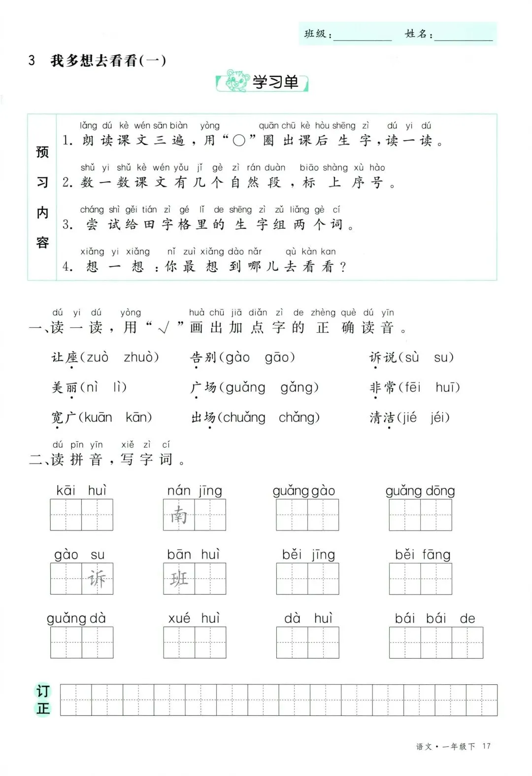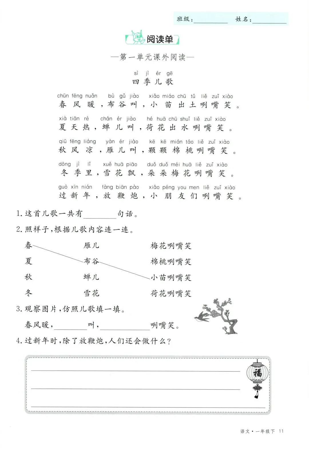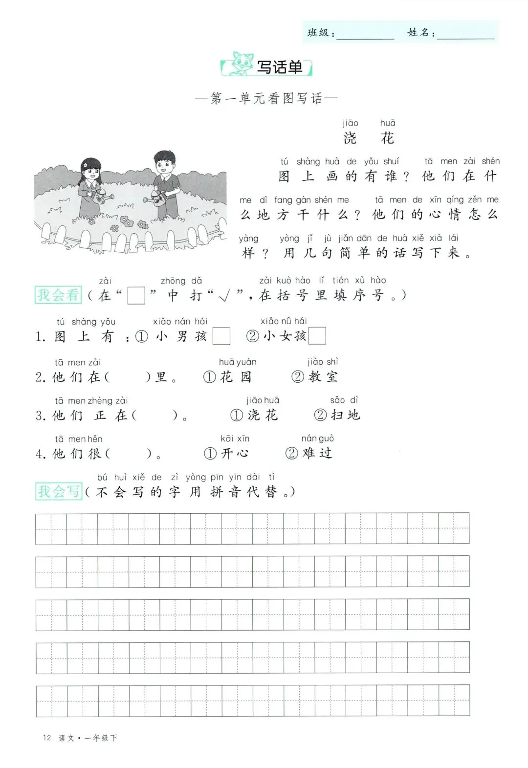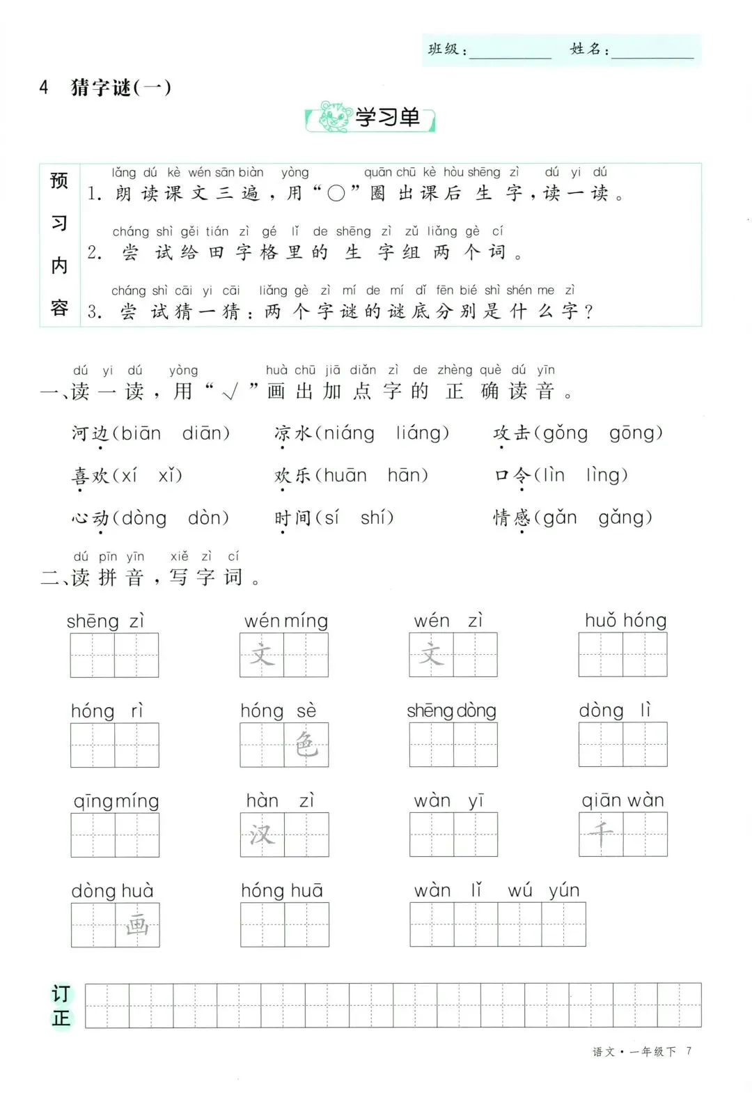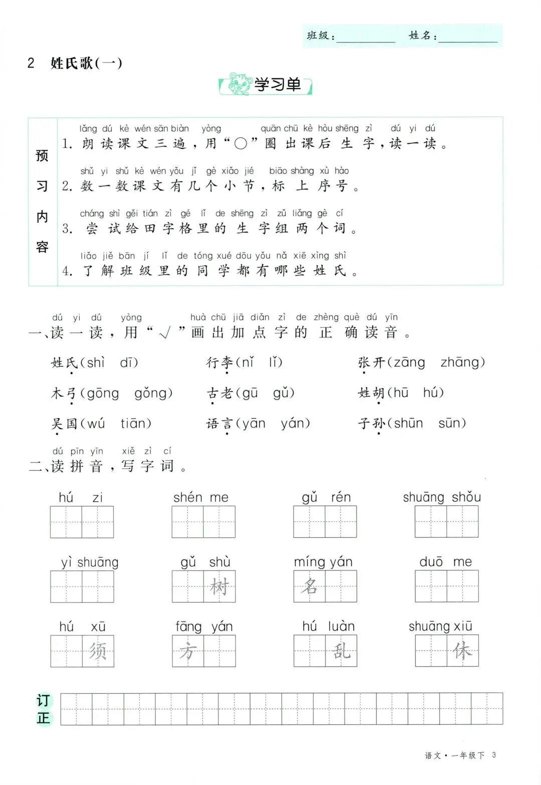 26年春新版一年级下册语文部编版全册学习单,有完整电子版可打印