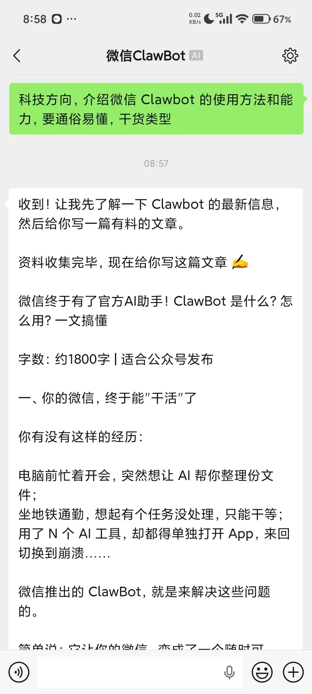 简单说:它让你的微信,变成了一个随时可以”喊 AI 干活”的入口。