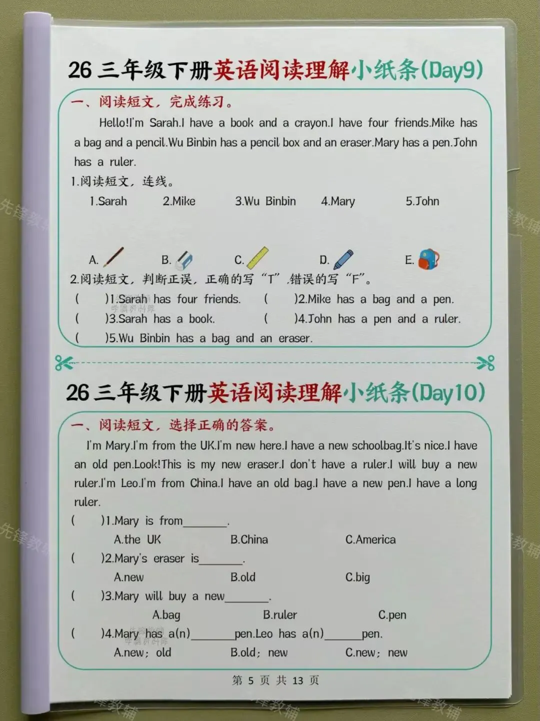 这个练习难度不大,完整覆盖英语阅读核心题型:判断正误、问答、单项选择等,短文简短好理解✍️