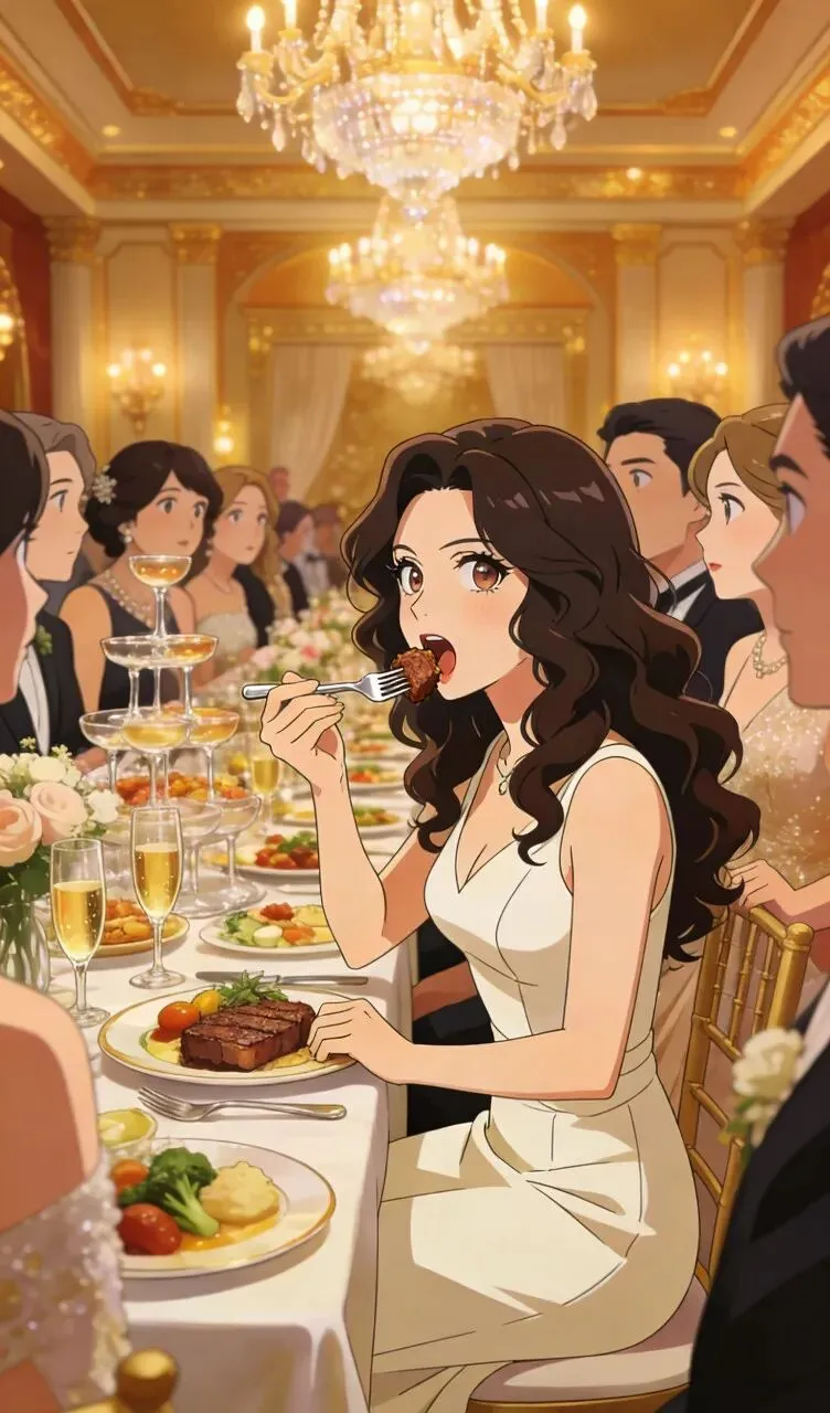 2. 顾雪莉只顾埋头吃喝,对旁人异样的目光毫不在意,桌上的菜肴被她狼吞虎咽吃下,举止粗鲁又放肆,宾客们低声交谈,都在猜测她的身份。