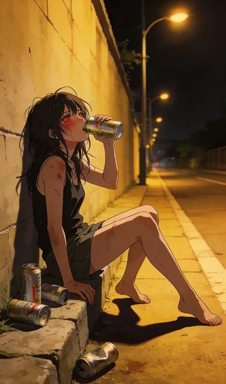 10. 顾雪莉被赶走后满心不甘,在路边胡乱喝起酒来,很快就酩酊大醉,她脚步虚浮,跌跌撞撞地走在昏暗的路边。