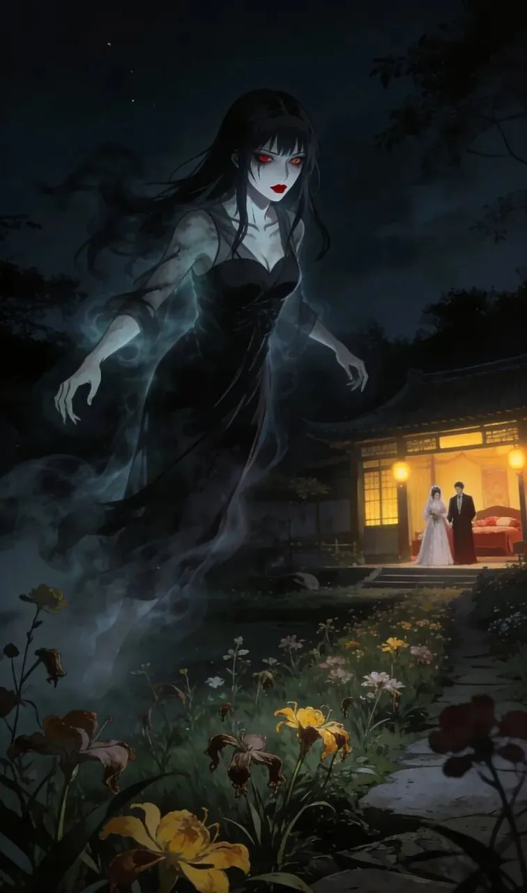 12. 顾雪莉心中怨气不散,死后化作容貌依旧艳丽的美女僵尸,周身散发着阴冷气息,直奔新郎新娘的洞房而去。