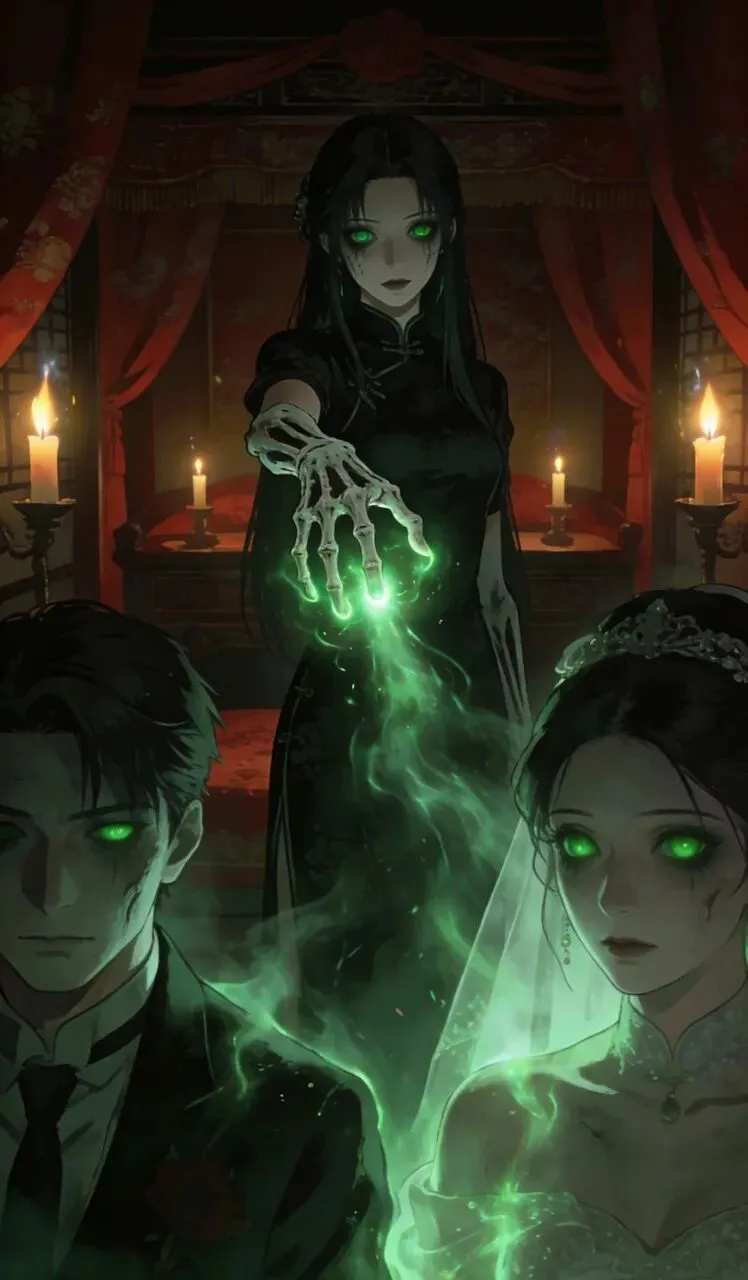 15. 美女僵尸抬手施展法术,光芒闪过,将新郎新娘一同变成了僵尸,两人失去自主意识,乖乖听从僵尸顾雪莉的吩咐。