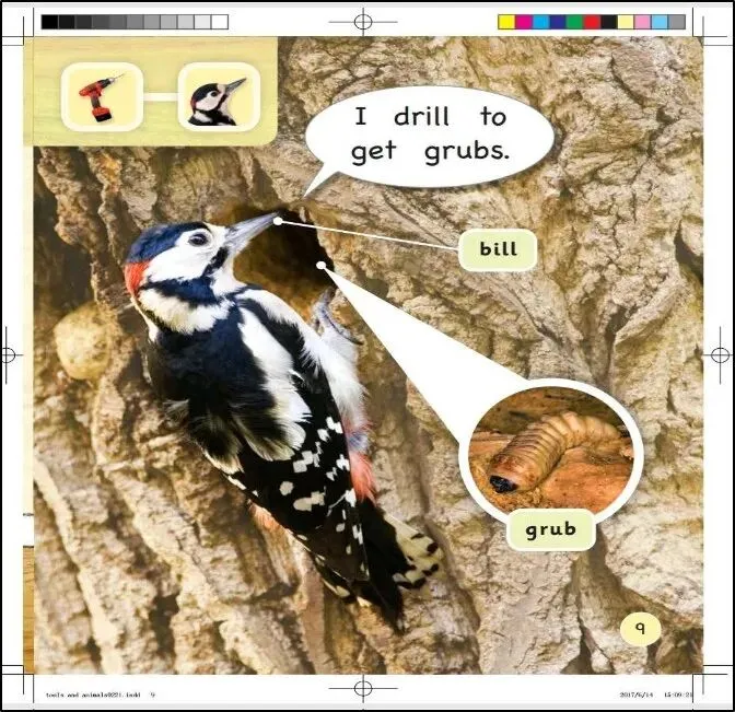 说明鸟用嘴像钻头一样钻孔找食物。