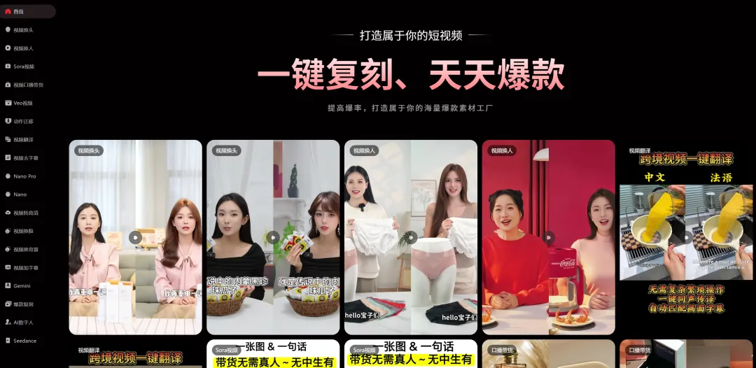 先跟大家说清楚,这个软件核心就是做爆款短视频一键复刻的,说白了就是靠AI帮忙,快速把同行已经爆过的短视频,原原本本复刻出来。