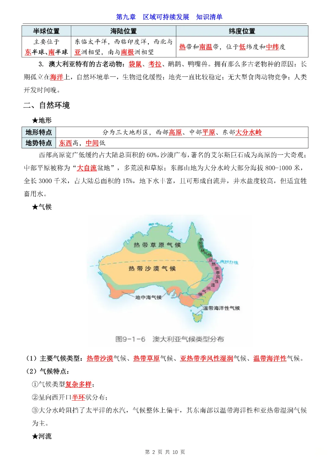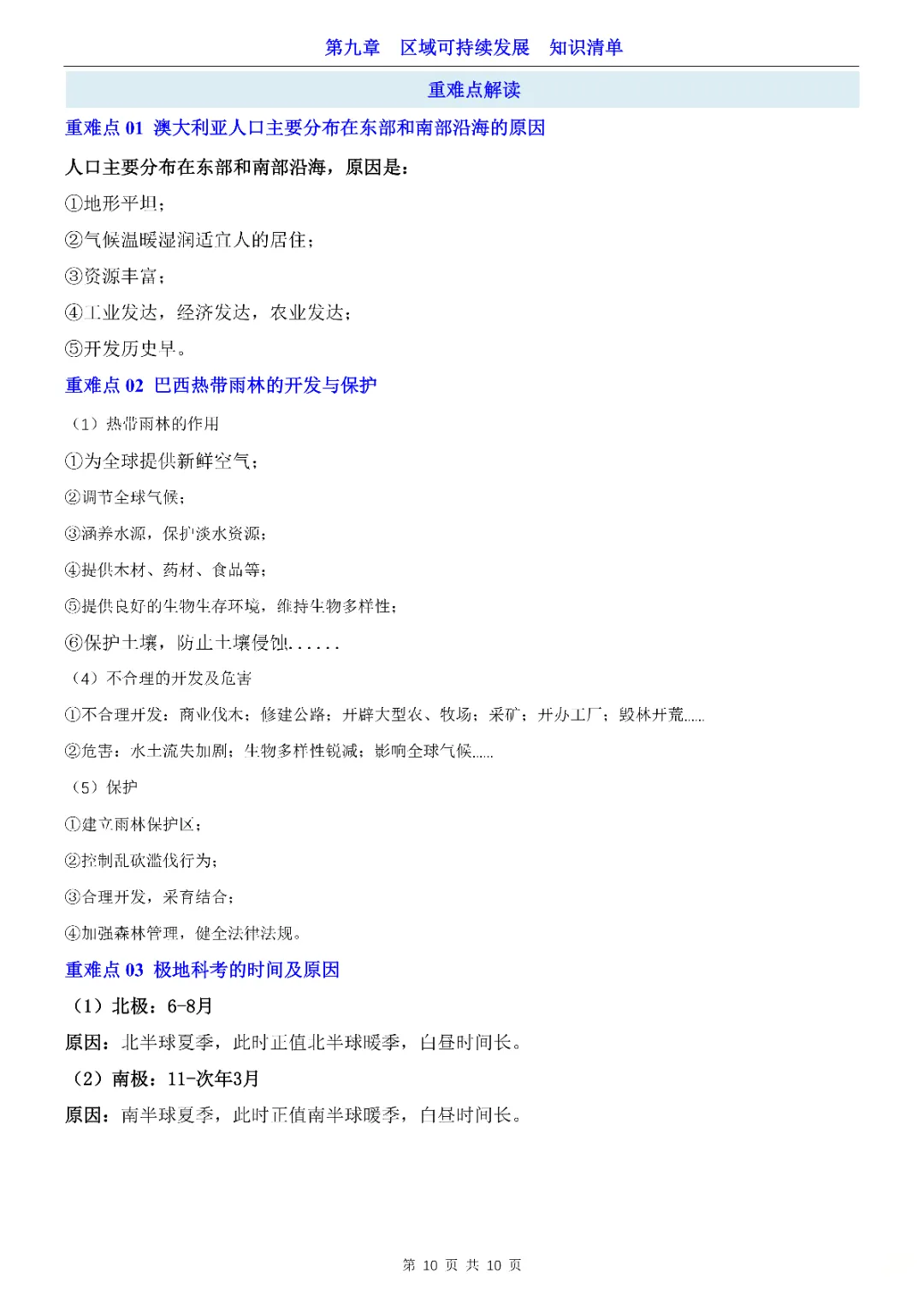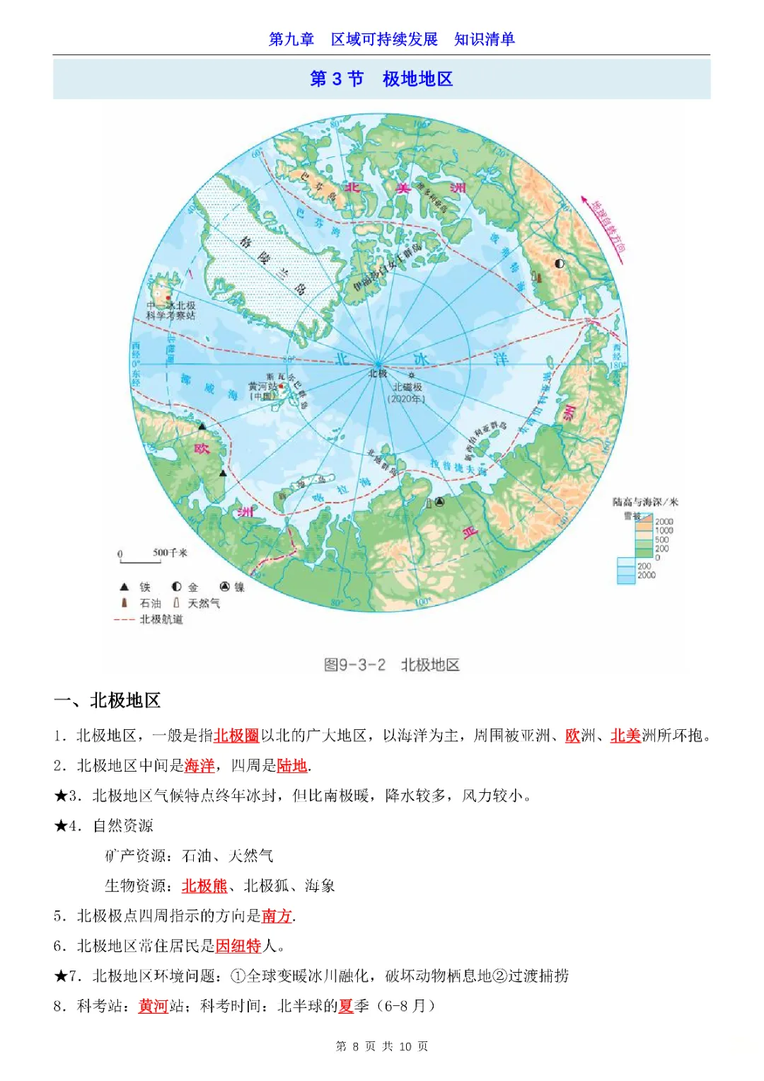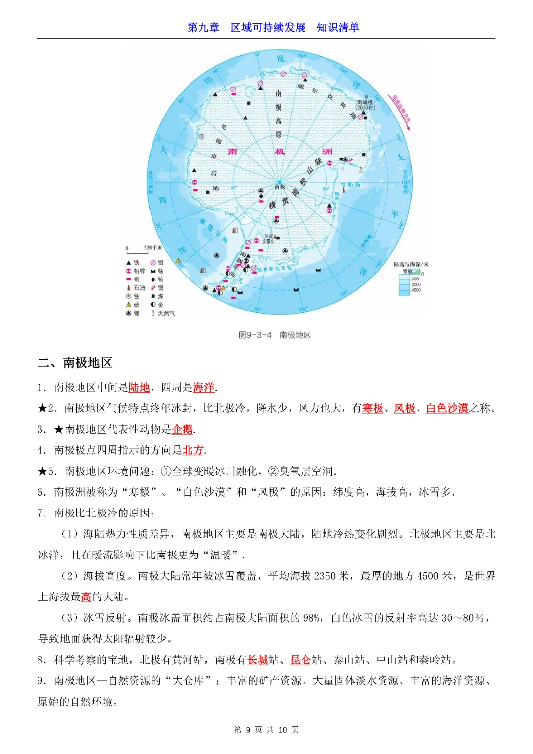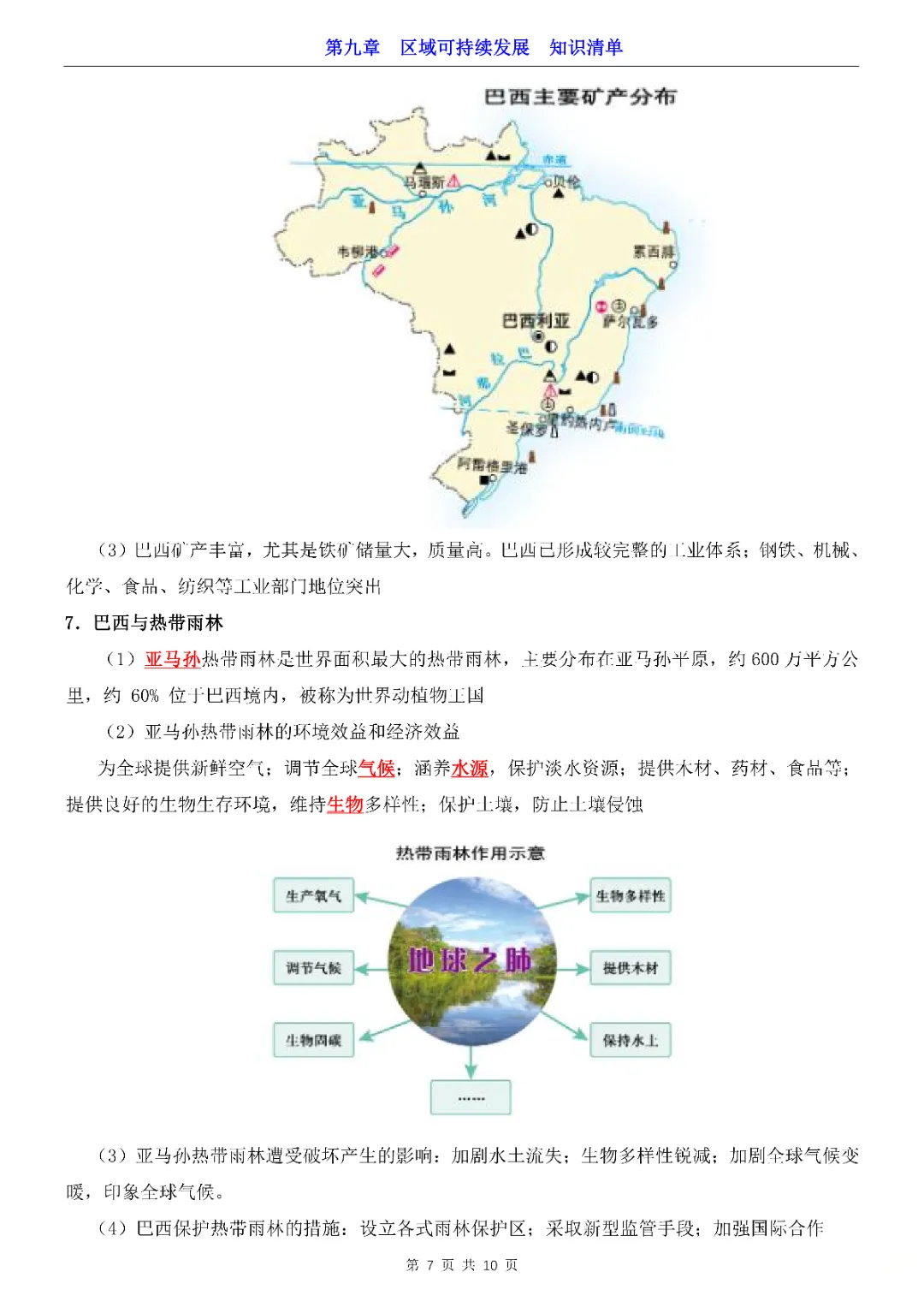 2026年七年级下册地理第9章区域可持续发展知识清单,完整电子版可打印。