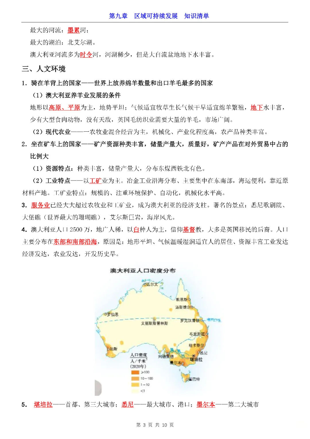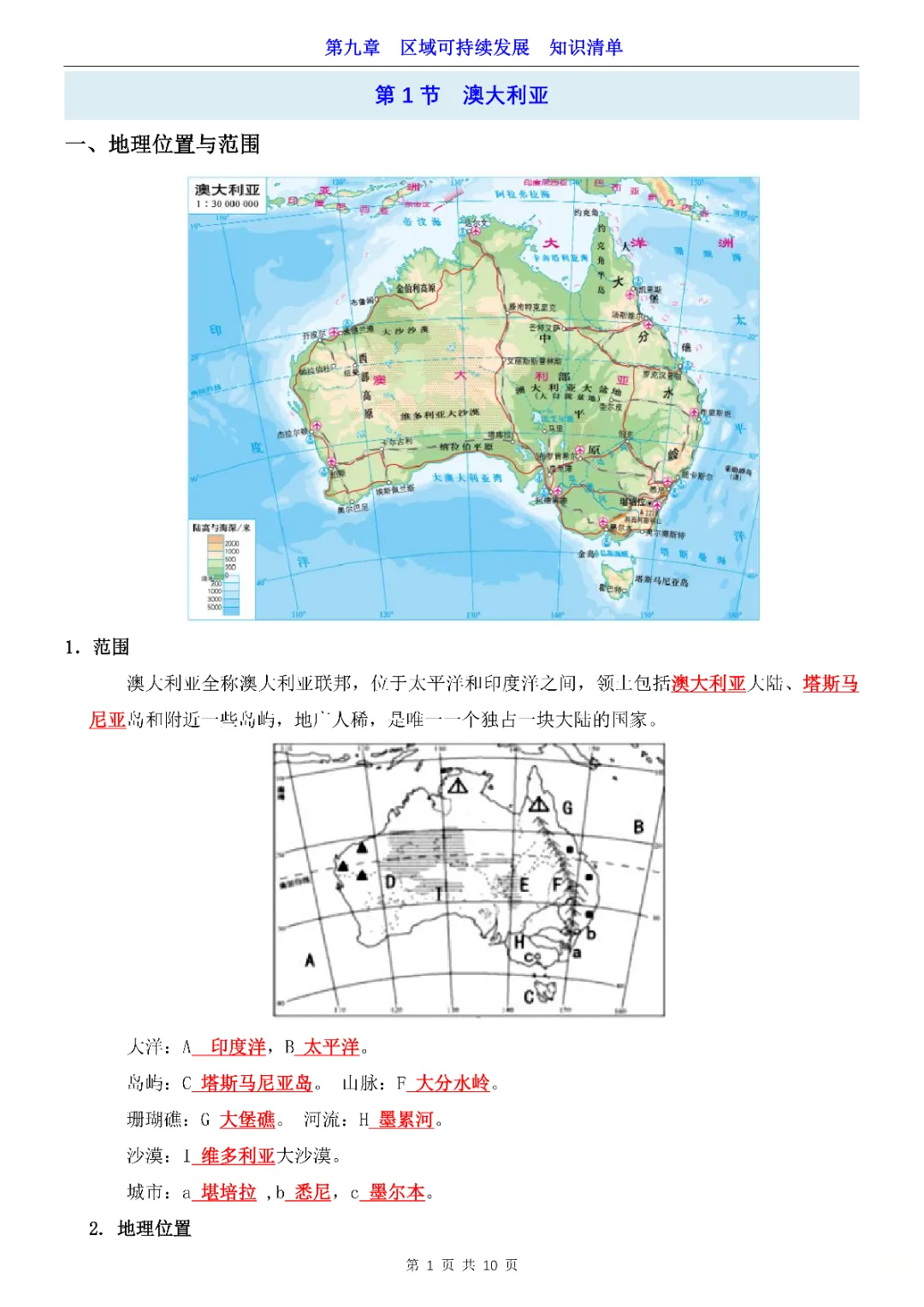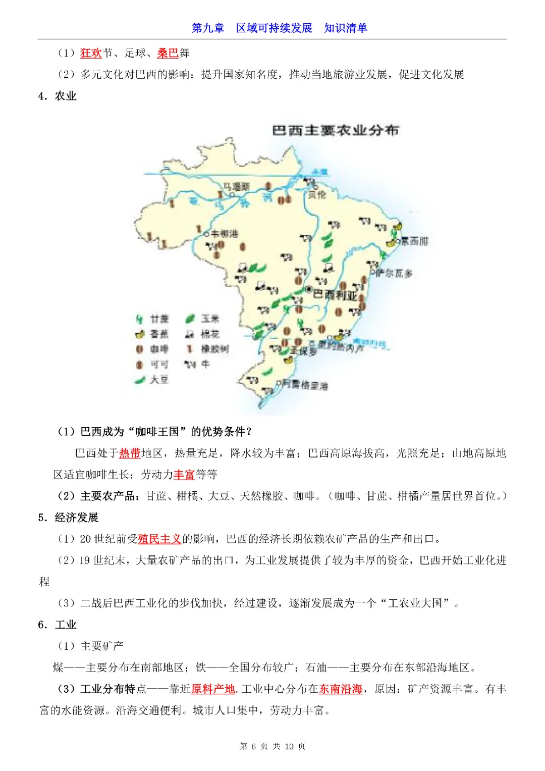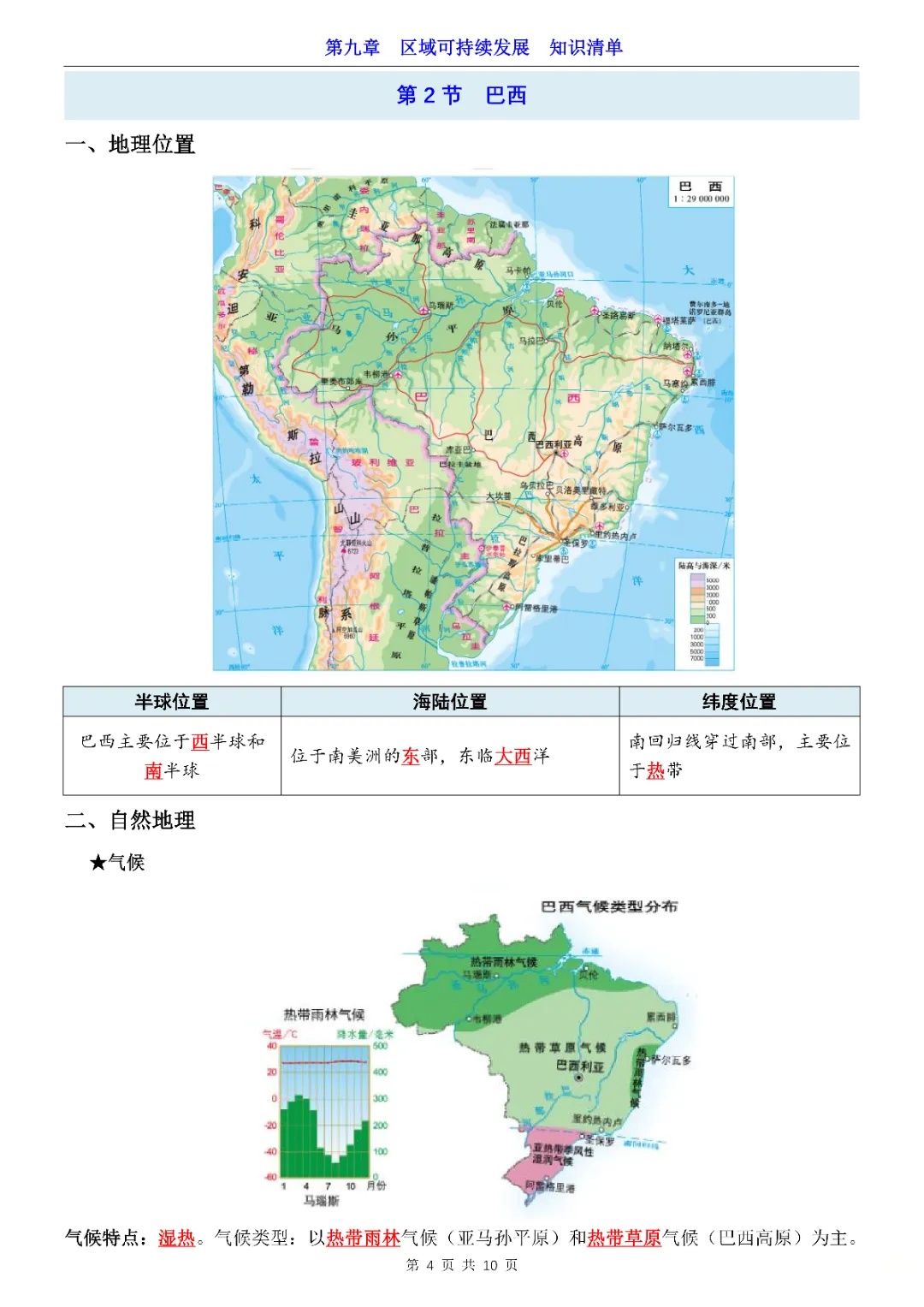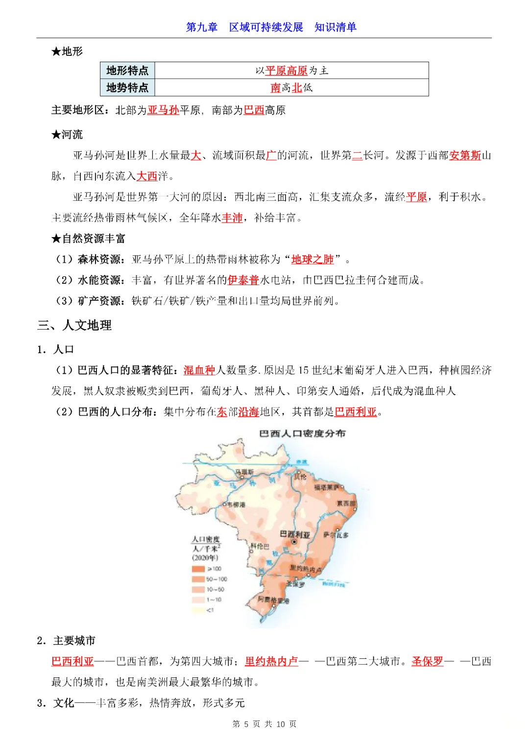 2026年七年级下册地理第9章区域可持续发展知识清单,完整电子版可打印。