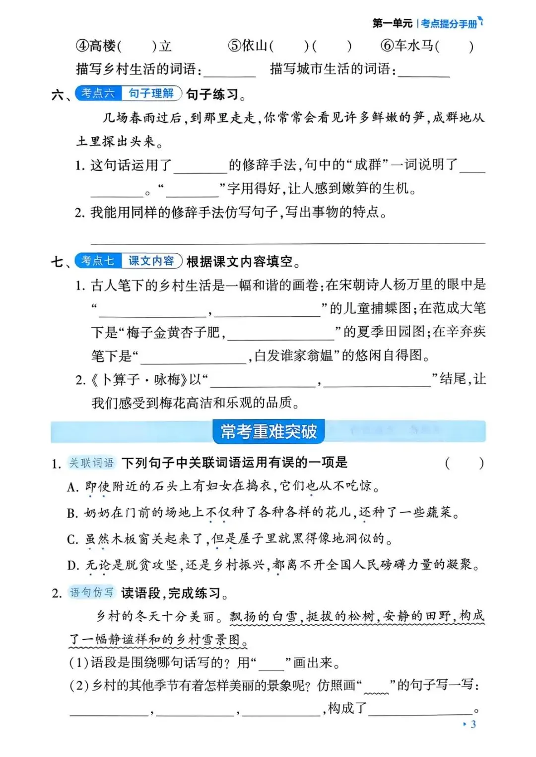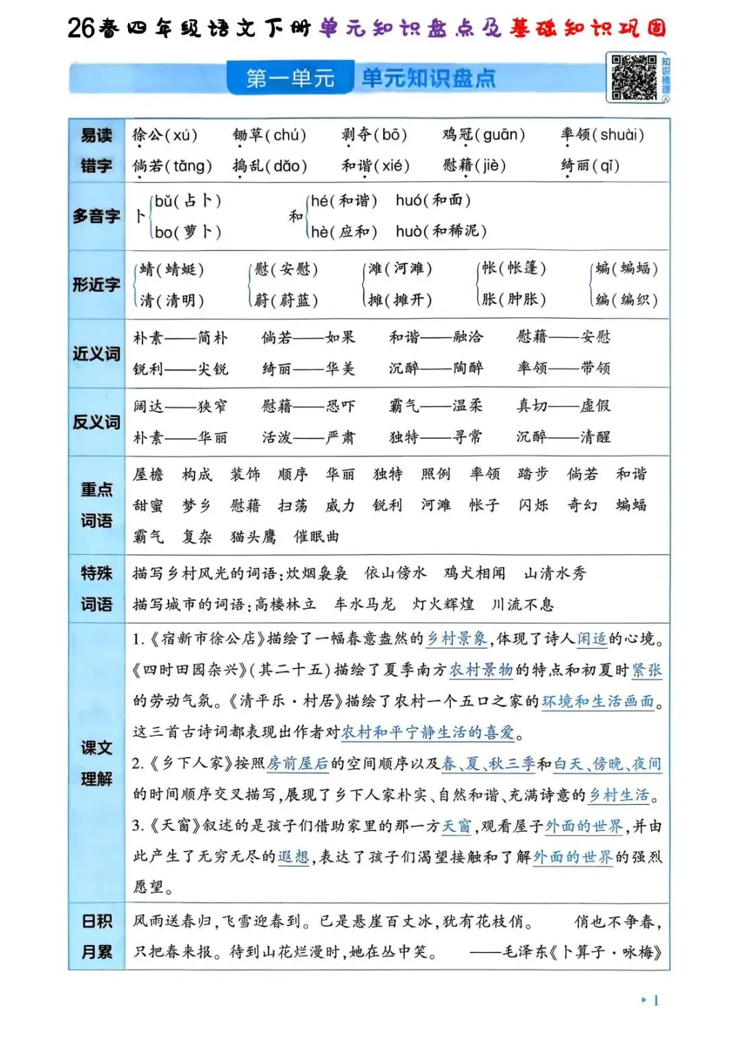 26春人教部编版四年级下册语文《1-8单元知识盘点及基础知识巩固练习》,共24页,可打印.