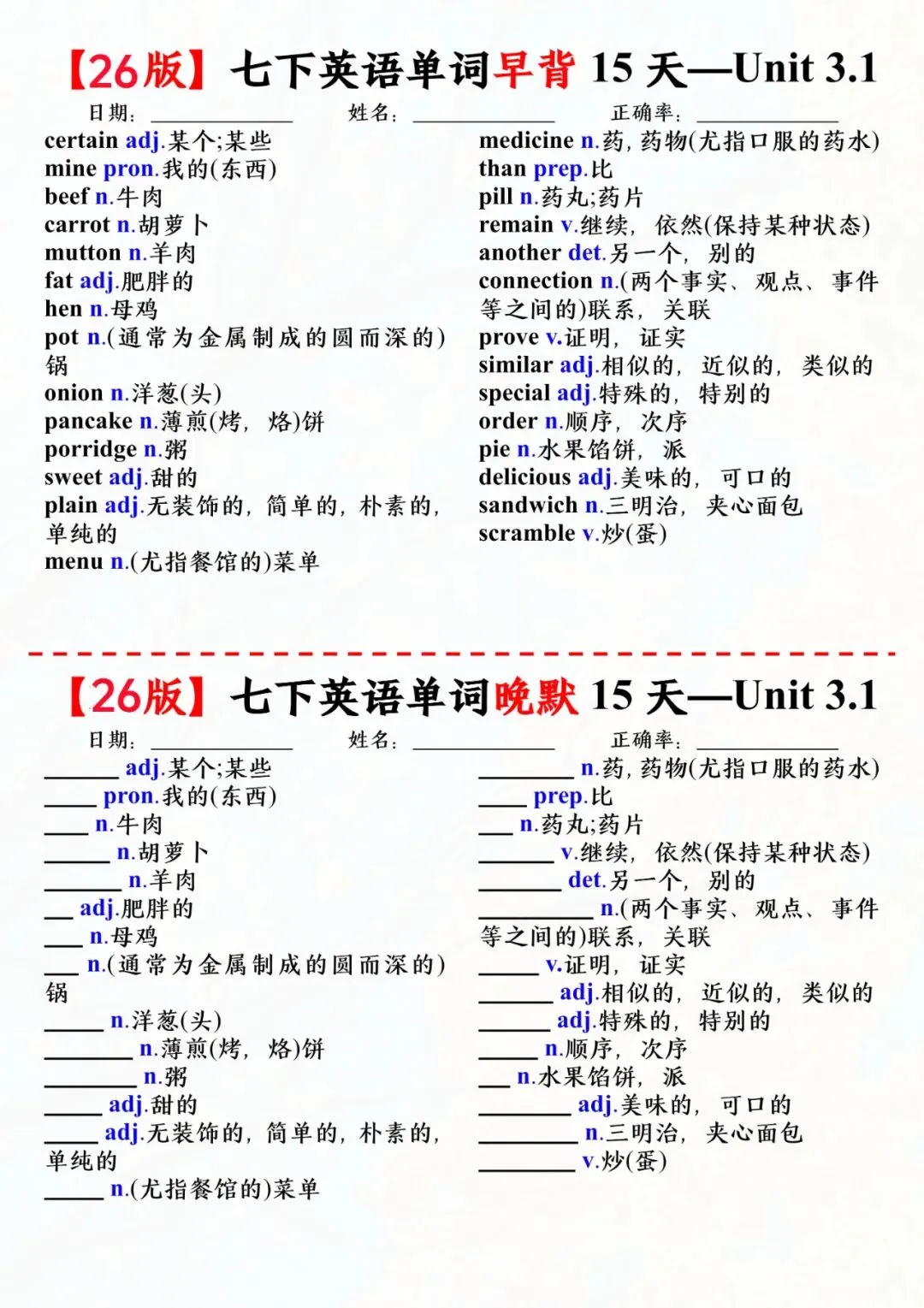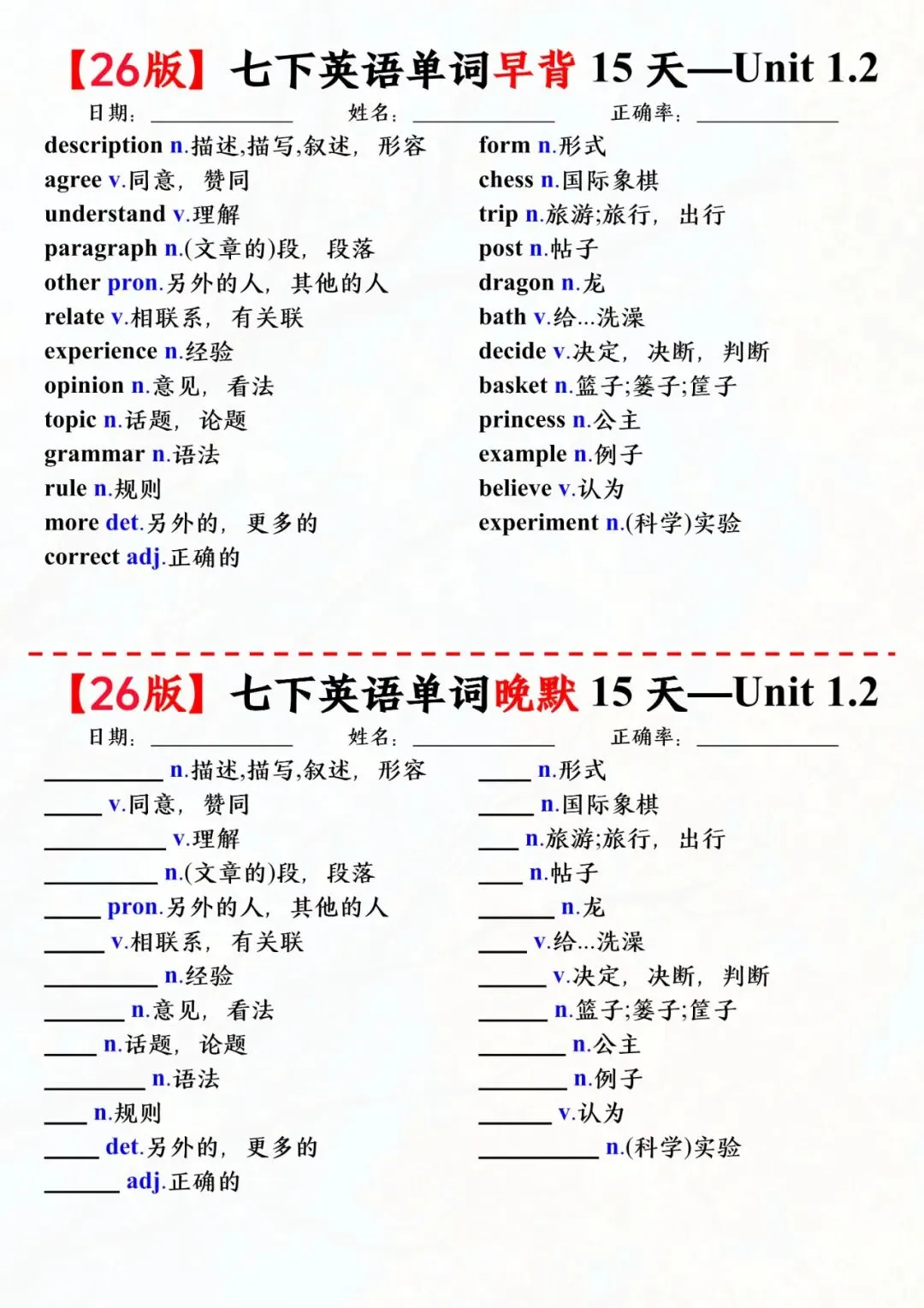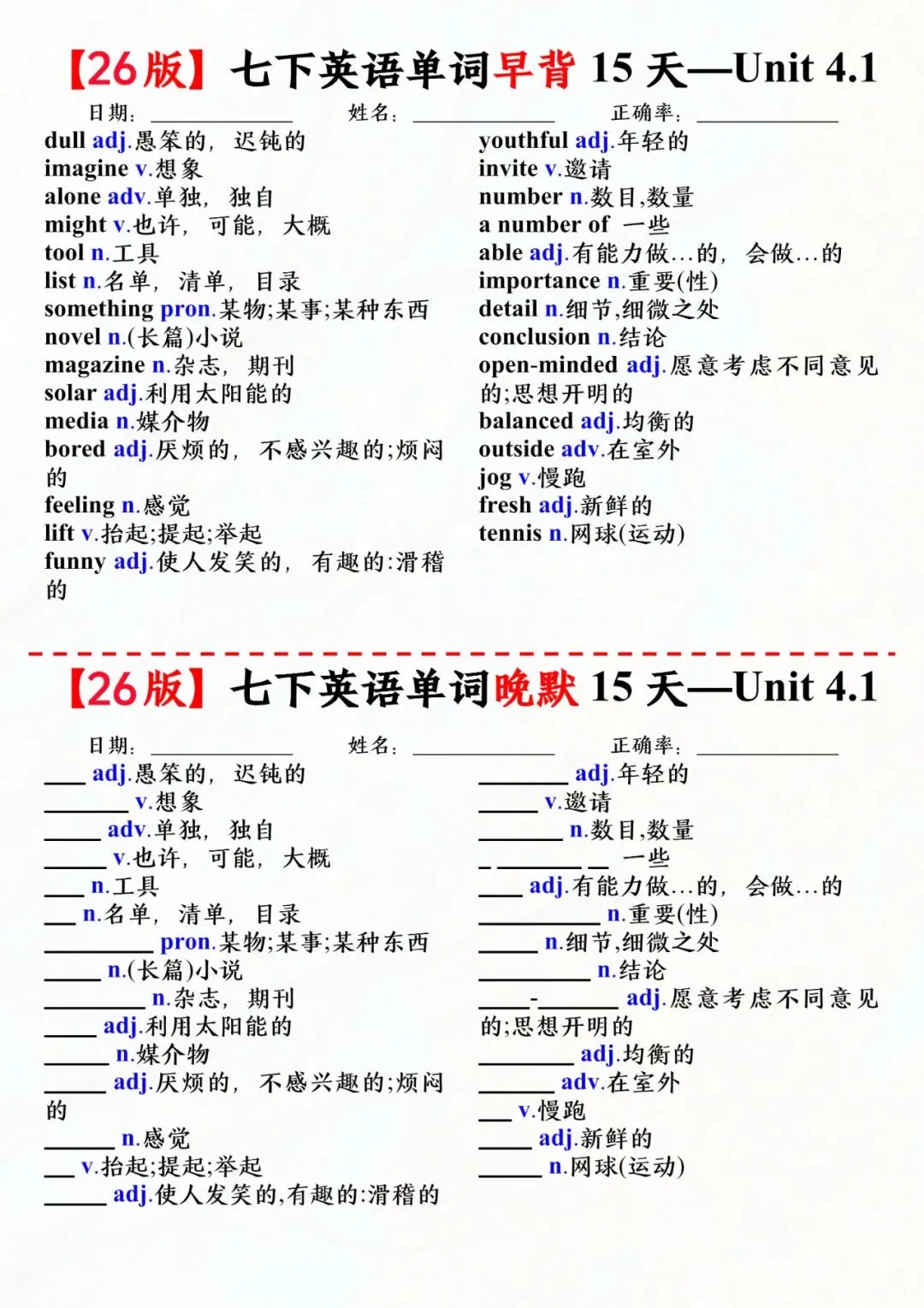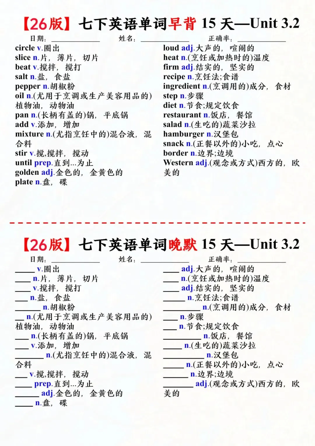 七年级下册英语外研版单词早背晚默小纸条电子版可打印