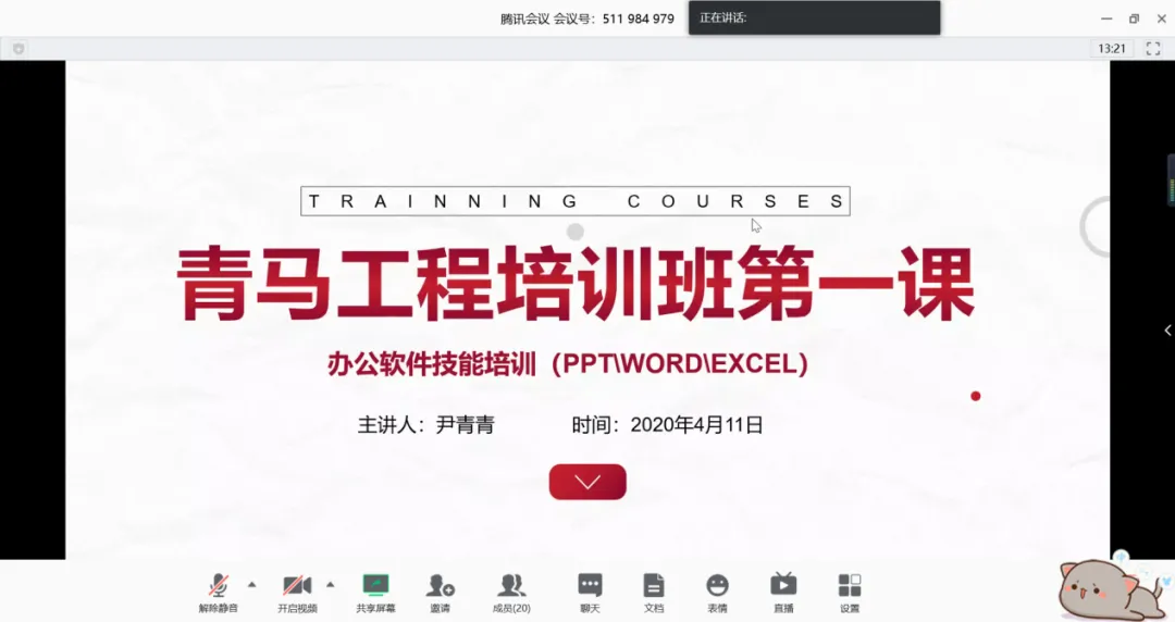4月11日下午2点30分在“腾讯会议”举行了传媒学院第一节“青马工程”提高班培训课。由华南农业大学珠江学院传媒学院团总支书记、广播电视编导18级的辅导员尹青青担任本次课程的主讲人,提高班成员们积极参与了此次线上“青马工程”培训。